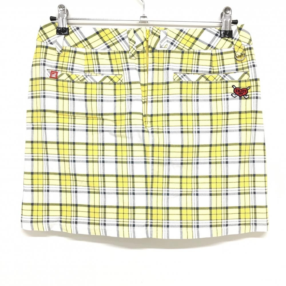 【美品】フィラゴルフ スカート チェック柄 総柄 一部プリーツ レディース L ゴルフウェア FILA GOLF
