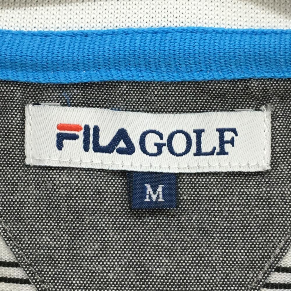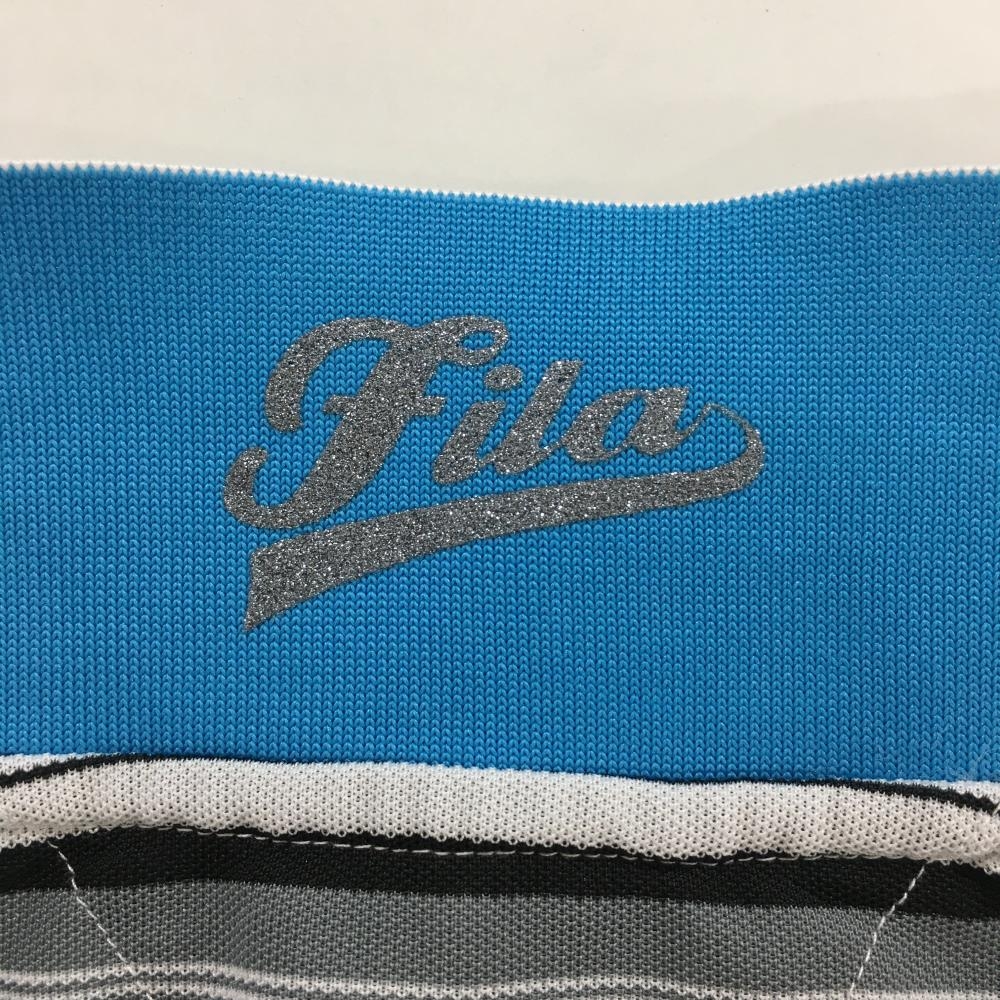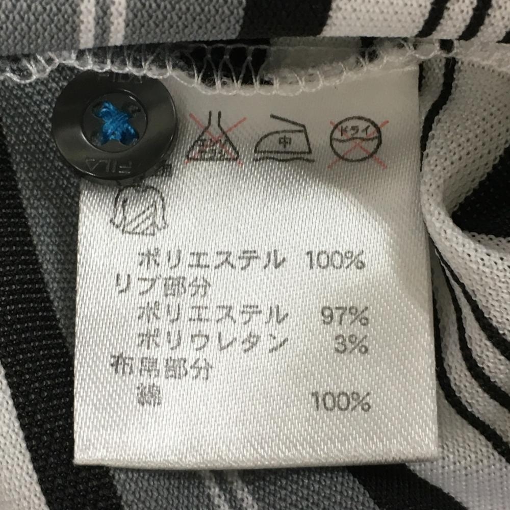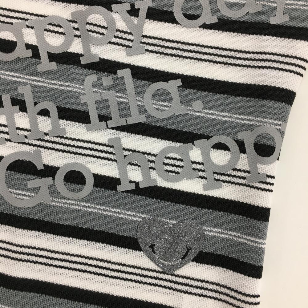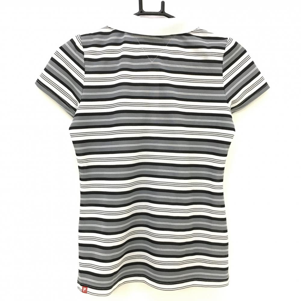 【超美品】フィラゴルフ 半袖ポロシャツ グレー×黒×白 ボーダー ハート レディース M ゴルフウェア FILA GOLF
