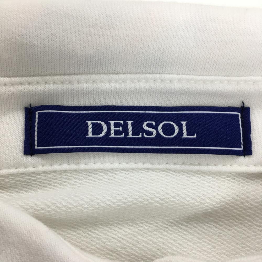 デルソル 半袖ポロシャツ 白×ライトグリーン ロゴプリント 襟裏柄 レディース M ゴルフウェア DELSOL