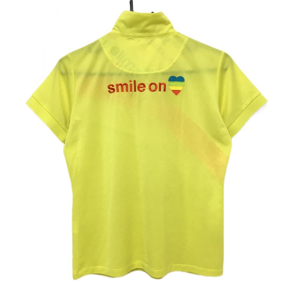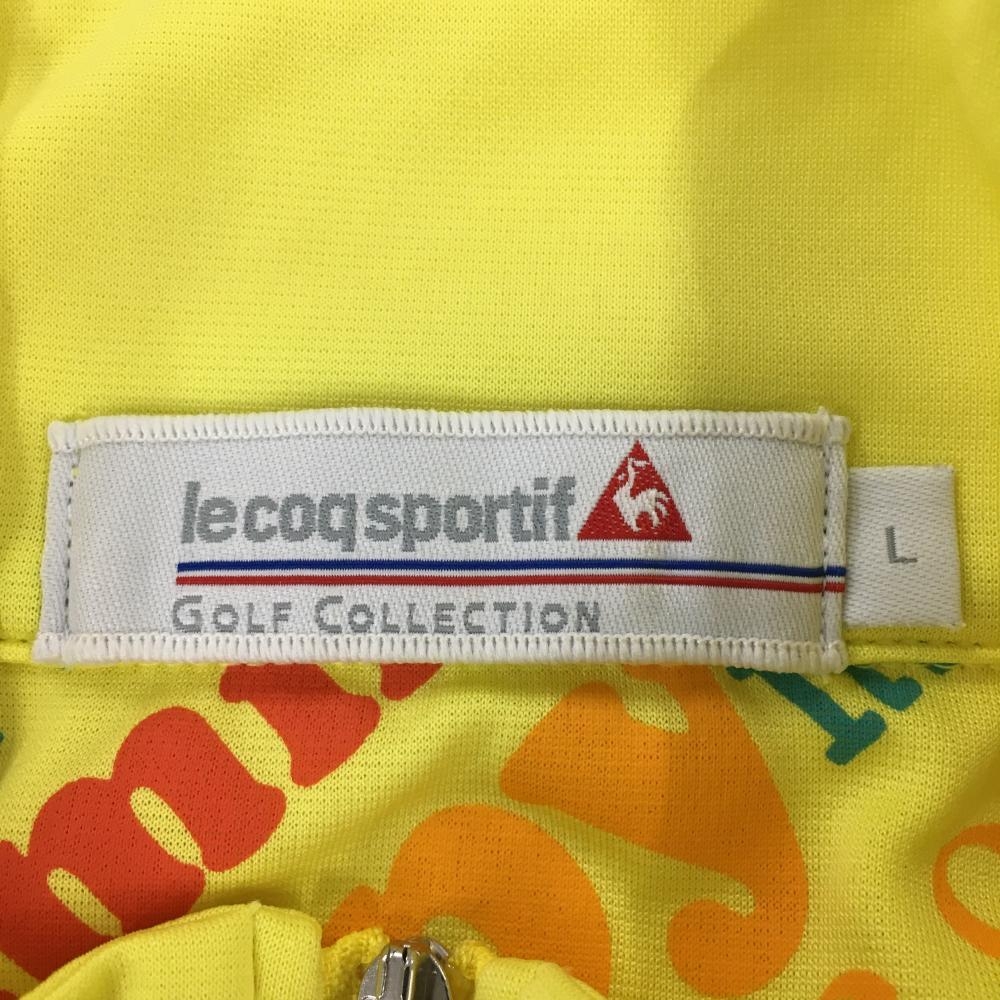 【美品】ルコック 半袖ハイネックシャツ イエロー×オレンジ ロゴ刺しゅう ハーフジップ レディース L ゴルフウェア le coq sportif