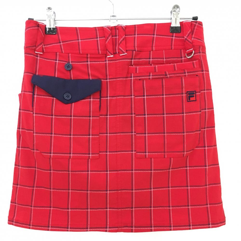 【超美品】フィラゴルフ スカート レッド×ネイビー×白 チェック 内側インナーパンツ付 レディース M ゴルフウェア FILA GOLF