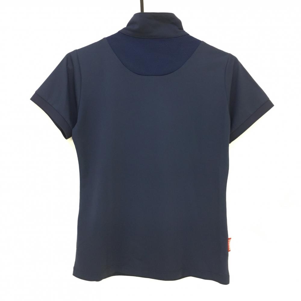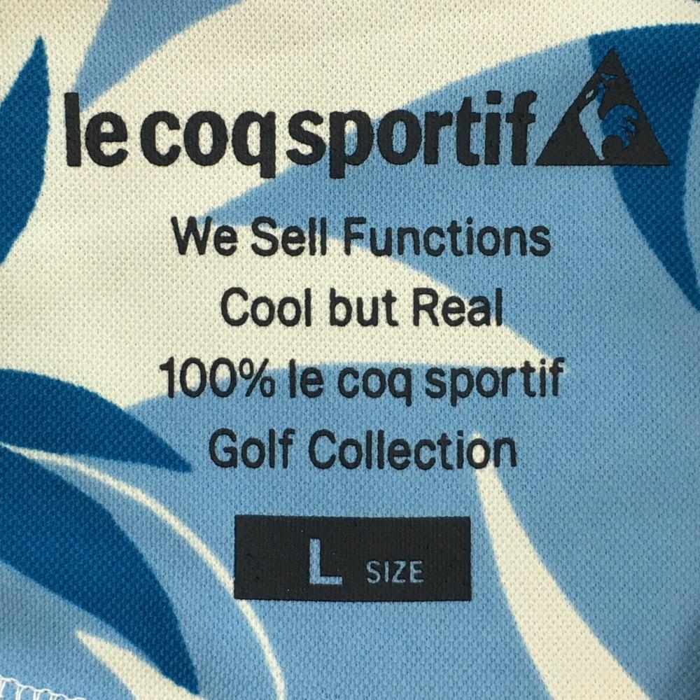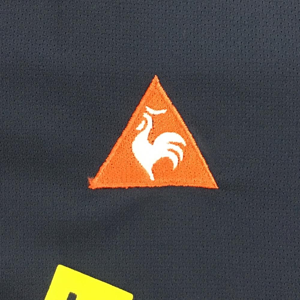 【超美品】ルコック 半袖ハイネックシャツ ネイビー×イエロー ビッグプリント ハーフジップ レディース L ゴルフウェア le coq sportif