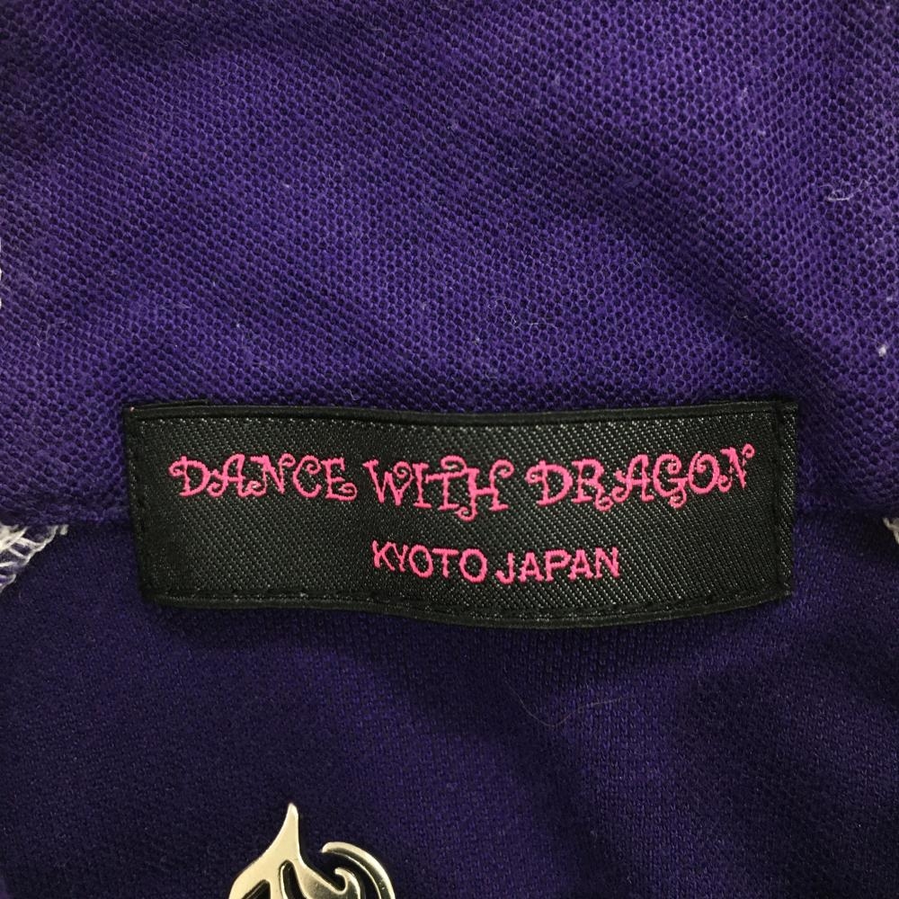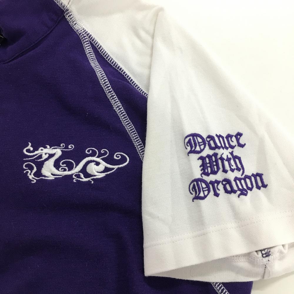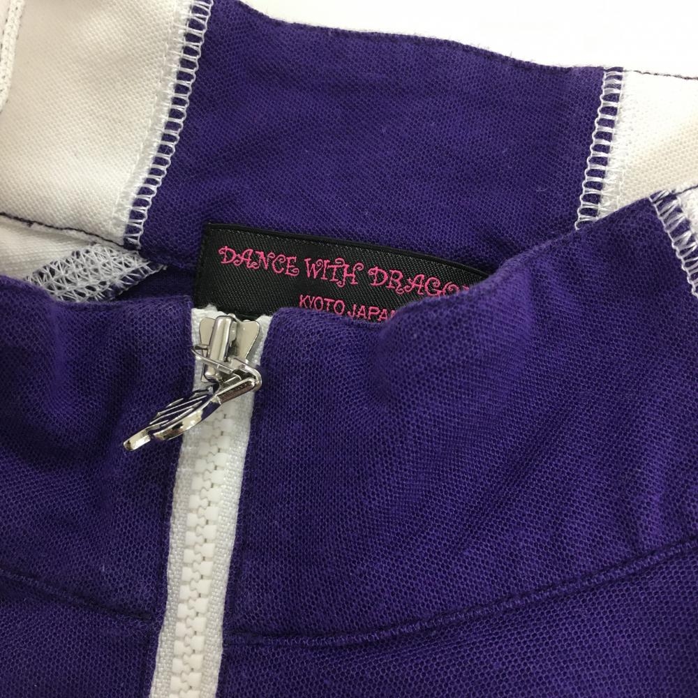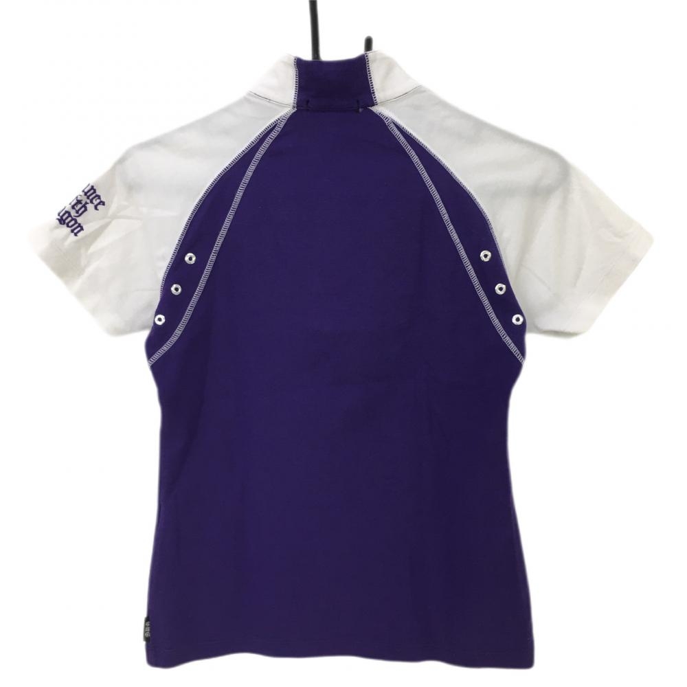 【美品】ダンスウィズドラゴン 半袖ハイネックシャツ パープル×白 ハーフジップ レディース 2(M) ゴルフウェア Dance With Dragon
