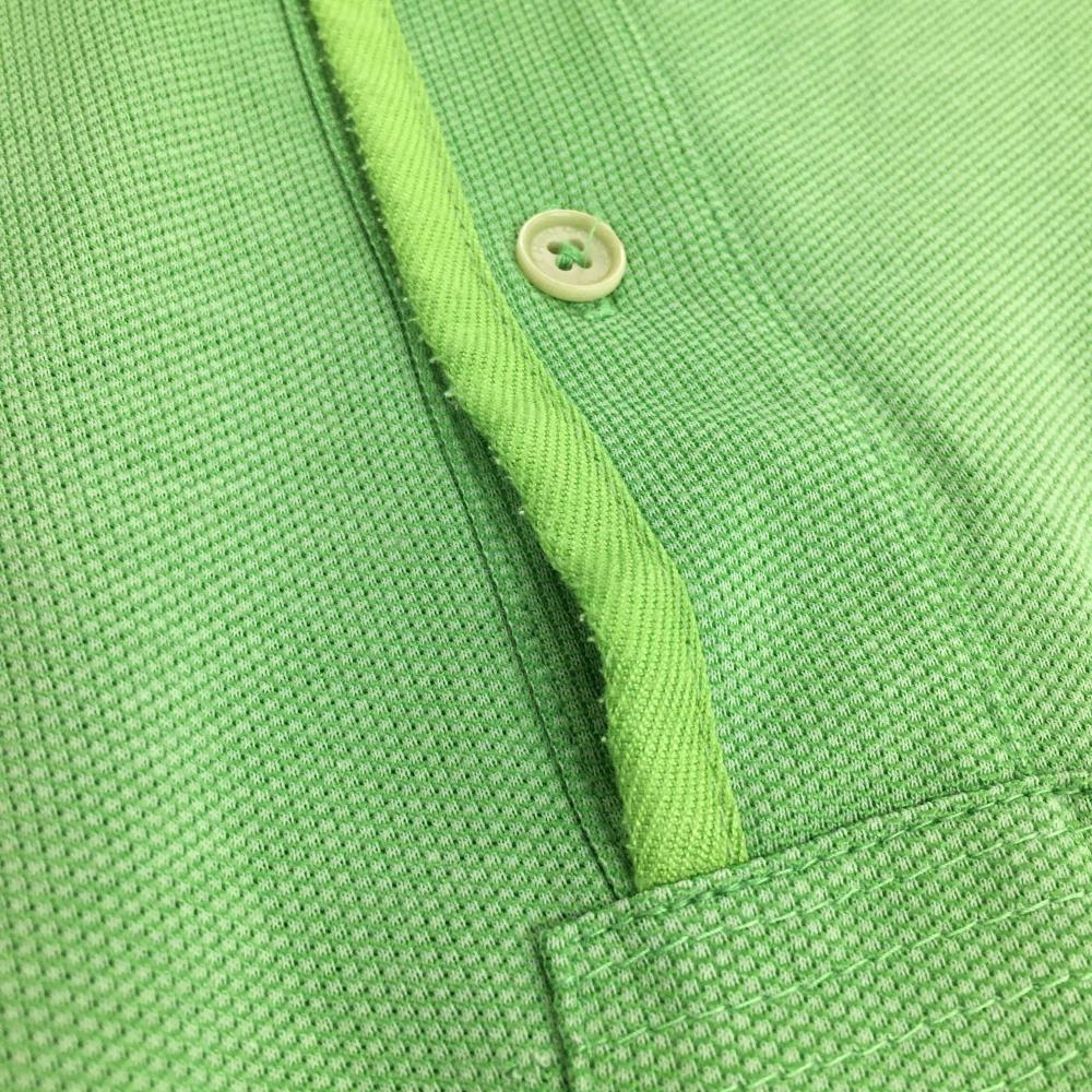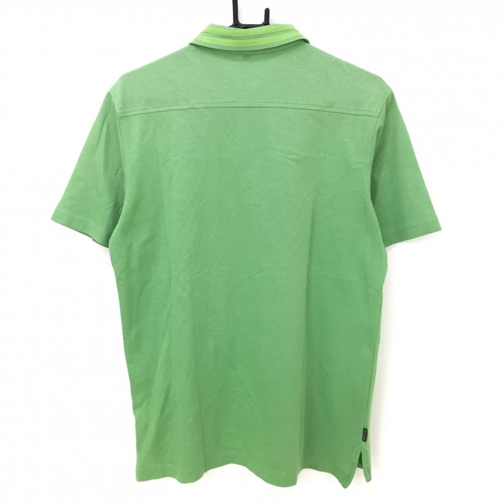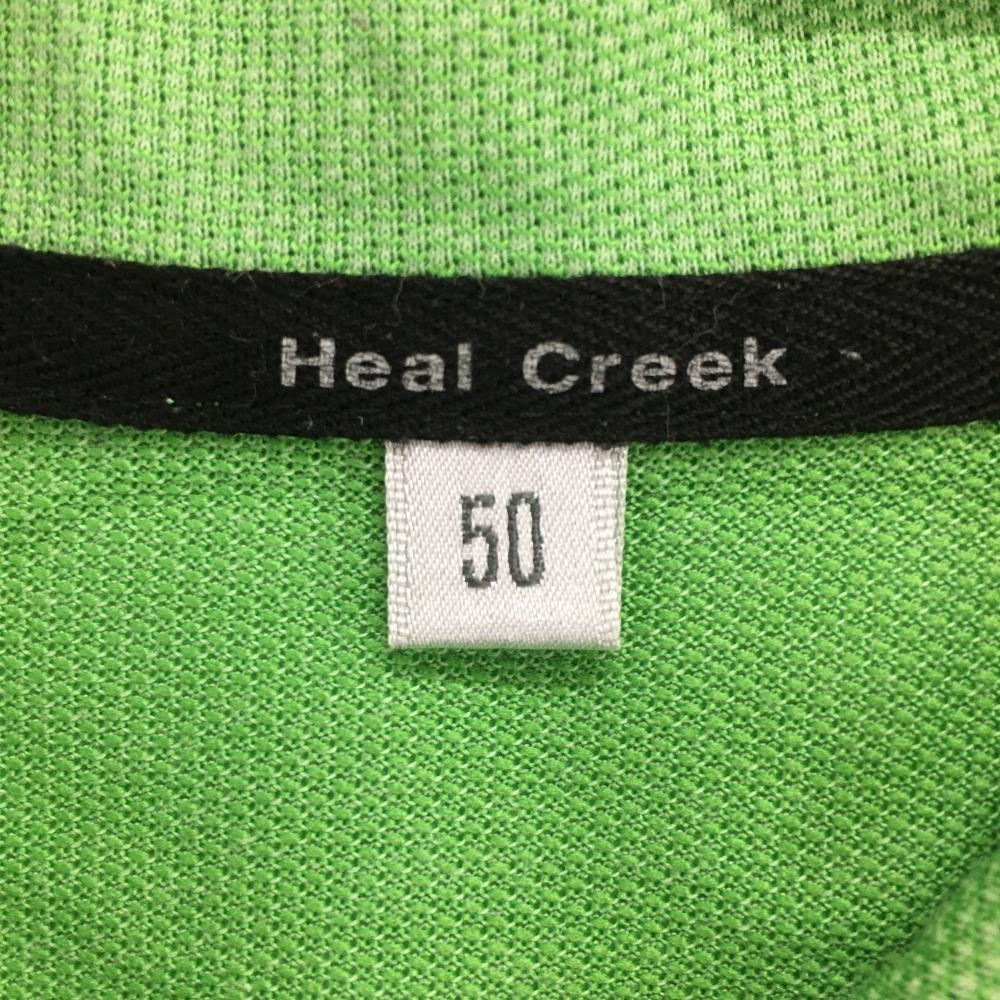 ヒールクリーク 半袖ポロシャツ ライトグリーン×黒 襟テープライン フロッキープリント メンズ 50(L) ゴルフウェア Heal Creek