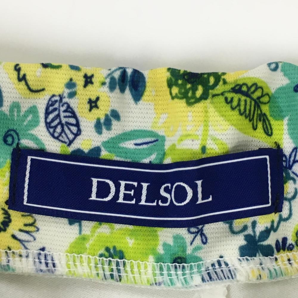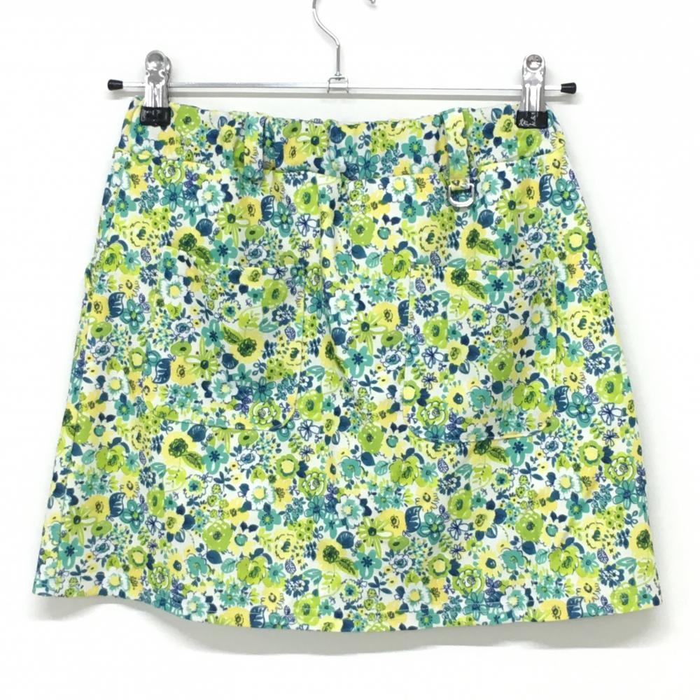 【超美品】デルソル スカート 白×ライトグリーン 花柄 総柄 ストレッチ 内側インナーパンツ レディース S ゴルフウェア DELSOL
