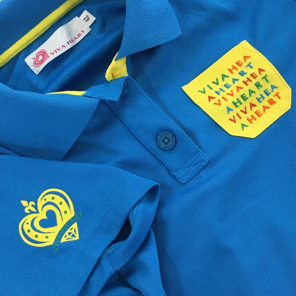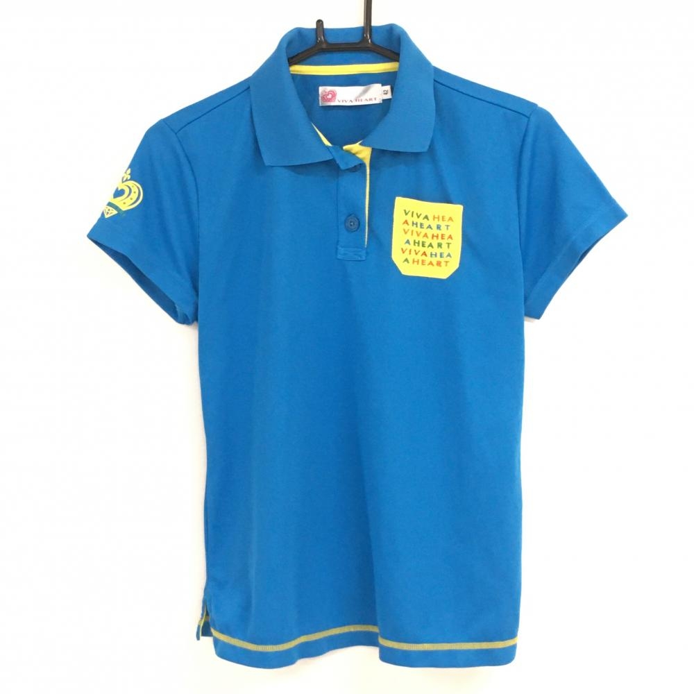 ビバハート 半袖ポロシャツ ブルー×イエロー 胸ポケット レディース 42 ゴルフウェア VIVA HEART