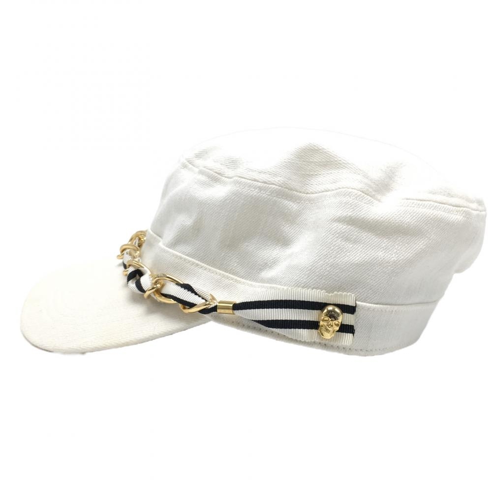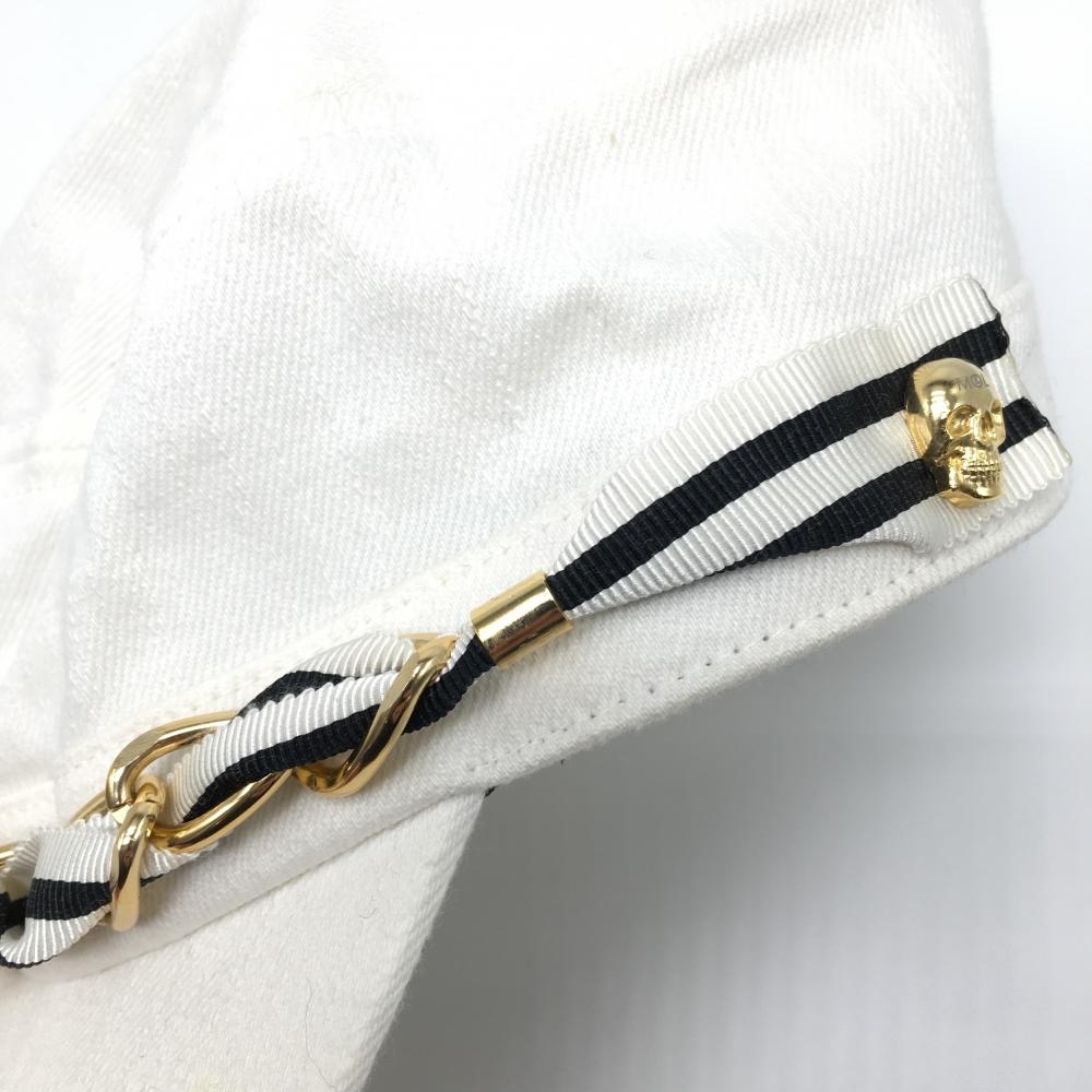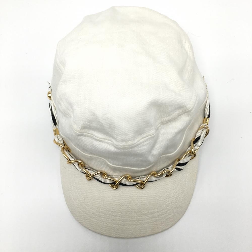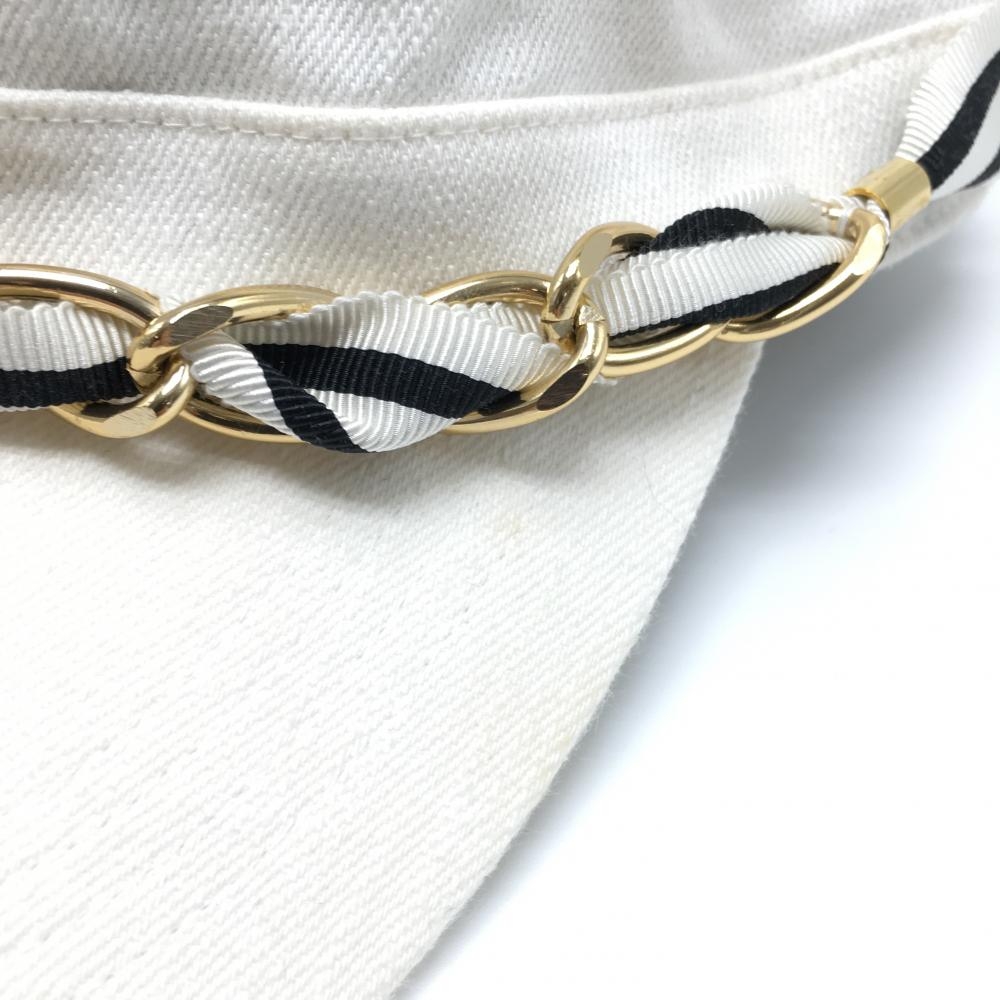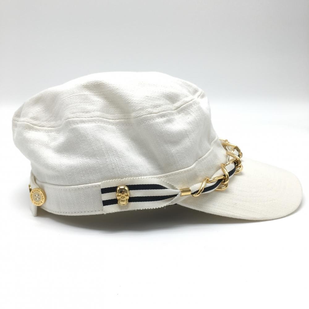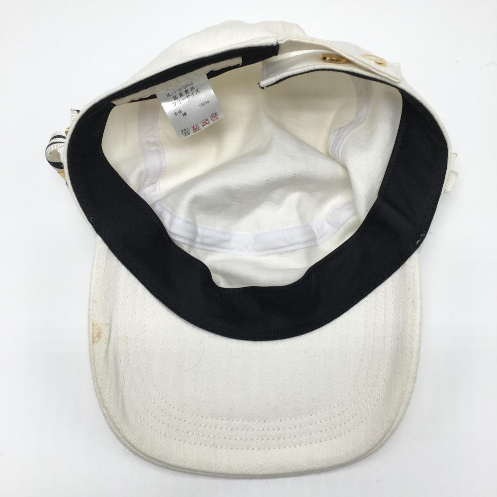 【美品】マークアンドロナ ワークキャップ アイボリー×黒 綿100% レディース フリーサイズ ゴルフウェア MARK&LONA