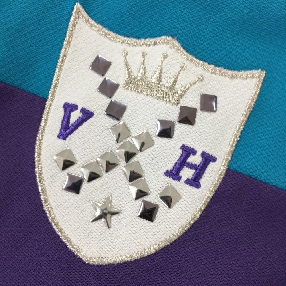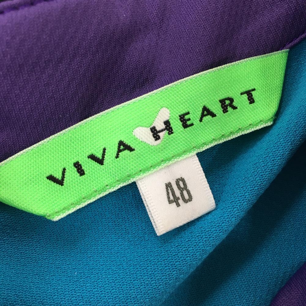 【超美品】ビバハート 長袖ポロシャツ ブルー×パープル 織生地 胸ポケット スタッズ メンズ 48(M) ゴルフウェア VIVA HEART