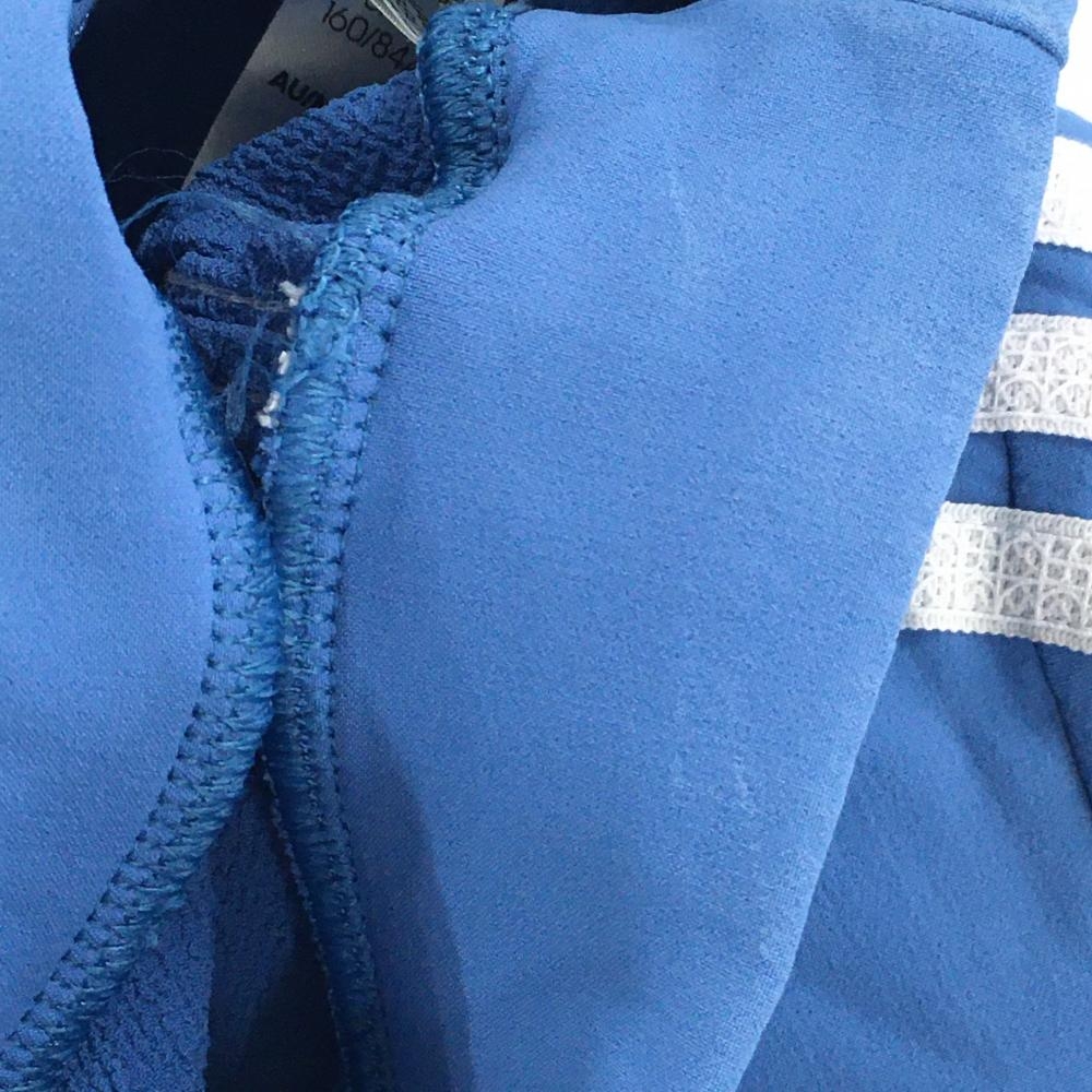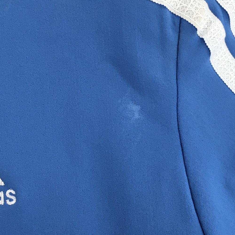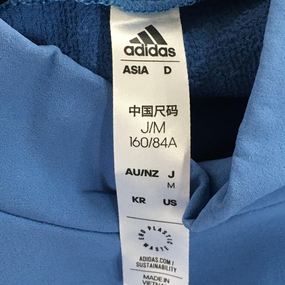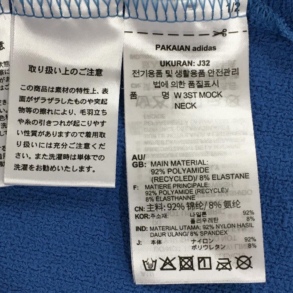 【美品】アディダス 半袖ハイネックシャツ ライトブルー×白 肩3ライン ネック・肩汚れ レディース M ゴルフウェア 2021年モデル adidas