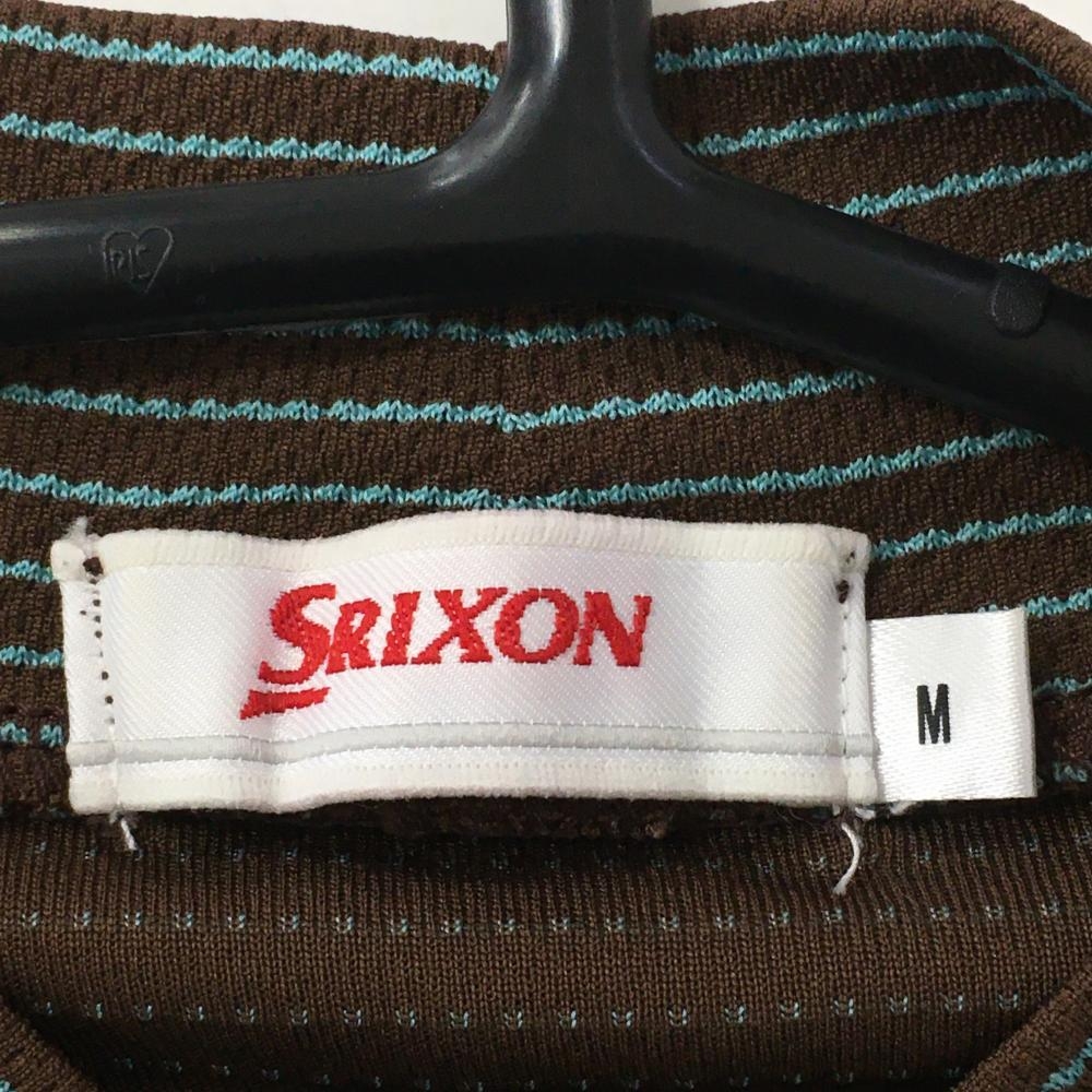 【超美品】スリクソン 長袖ハイネックシャツ ブラウン×ライトブルー ボーダー レディース M ゴルフウェア SRIXON