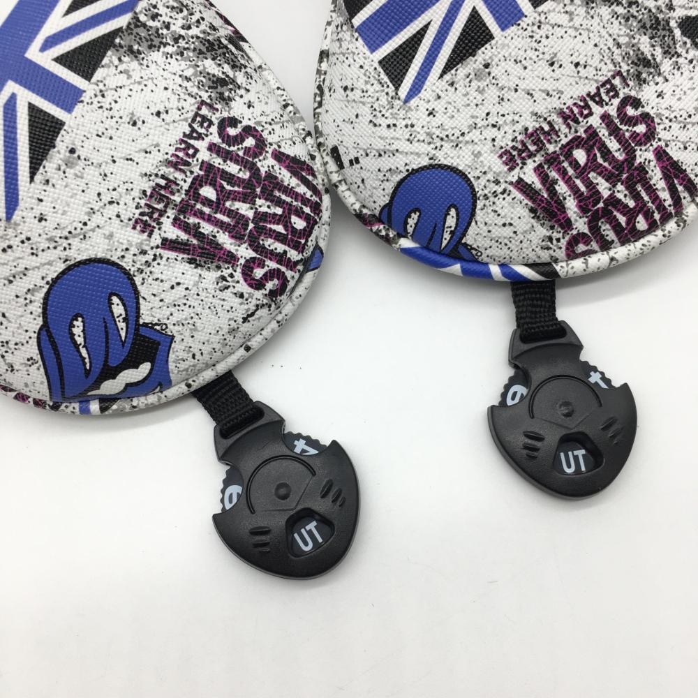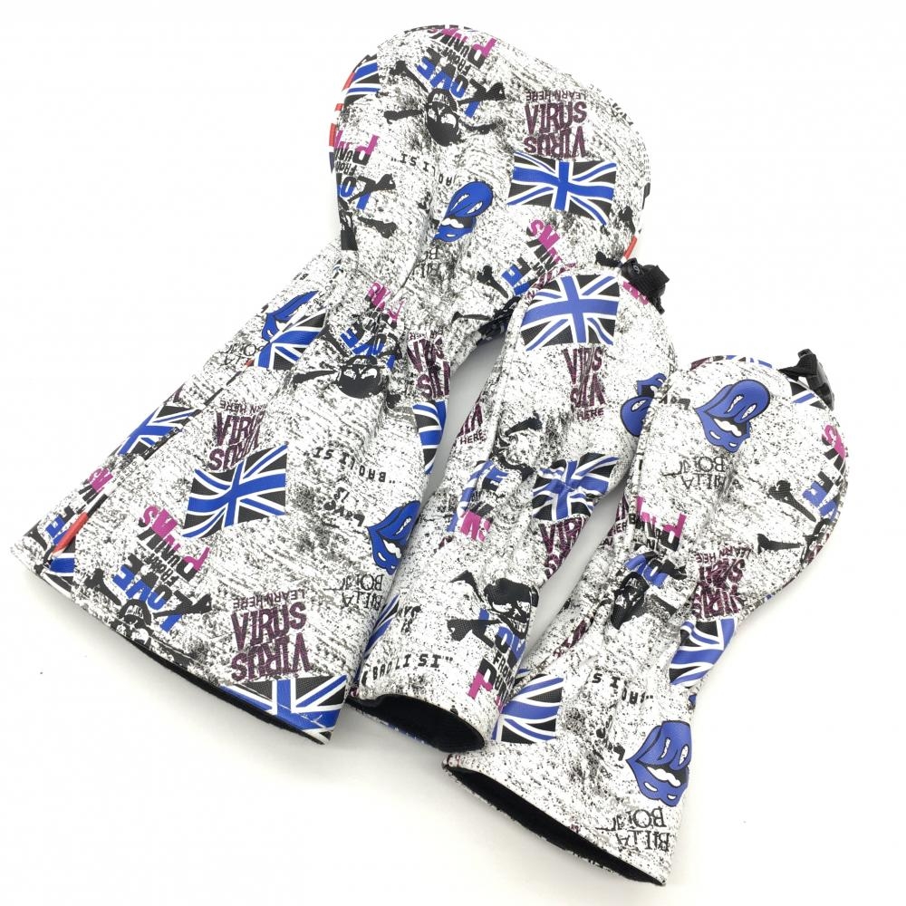 【超美品】PLUSKER ヘッドカバー3点セット(DR UT×2)グレー×黒 総柄 スカル ゴルフ PLUSKER