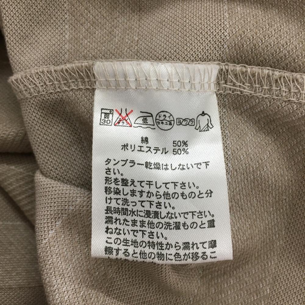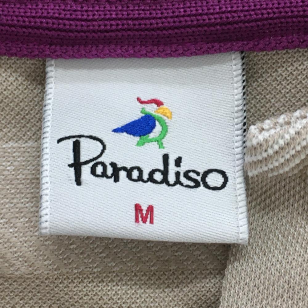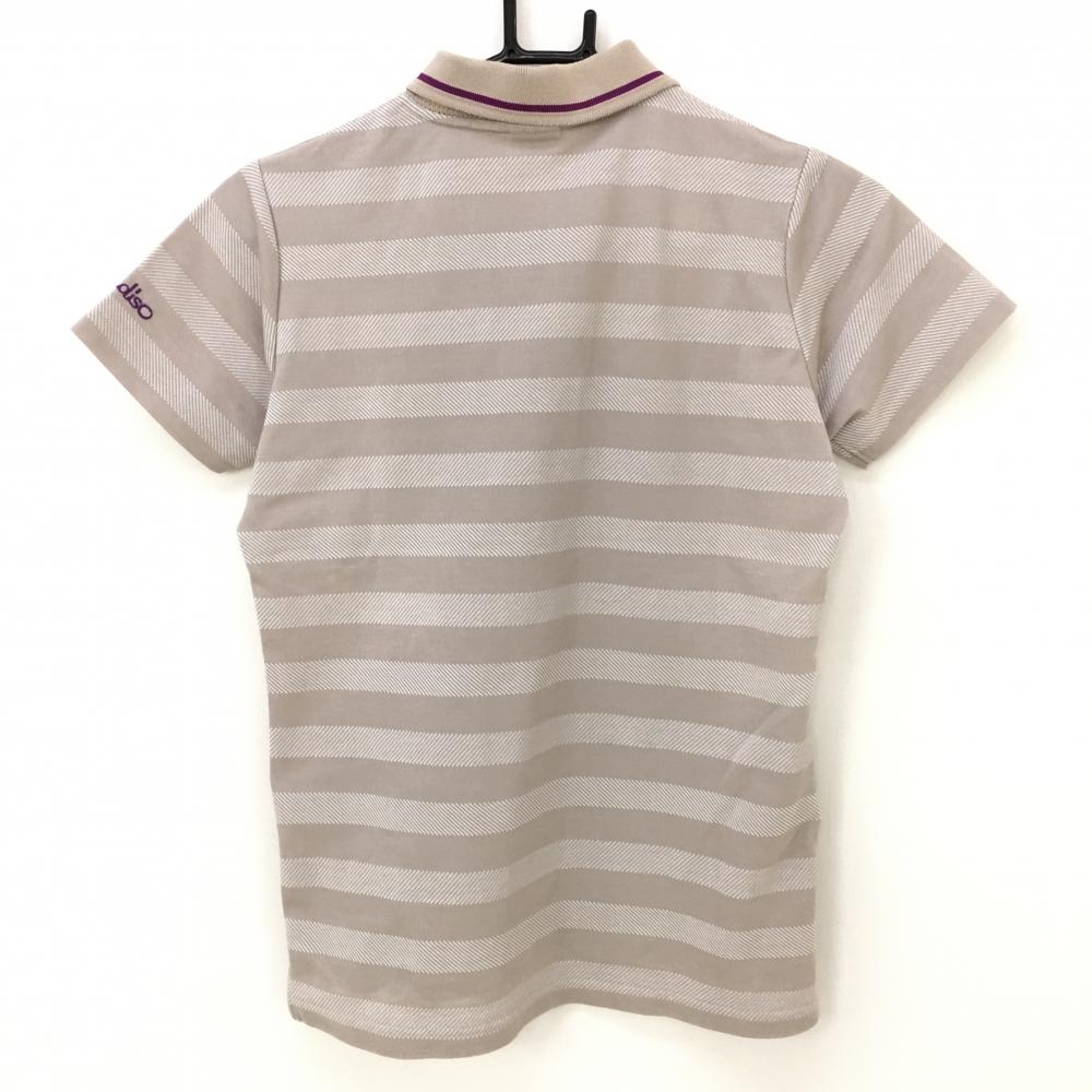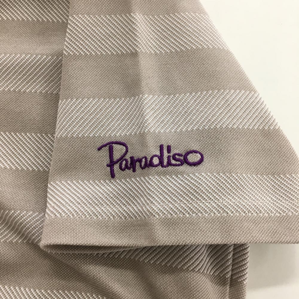 【美品】パラディーゾ 半袖ポロシャツ グレージュ系 ボーダー織生地 襟一部透かし編み レディース M ゴルフウェア Paradiso