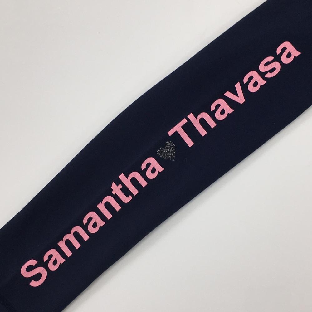 【美品】サマンサタバサ UNDER25 ハイネックインナーシャツ ネイビー×ピンク 袖ロゴ レディース S ゴルフウェア Samantha Thavasa