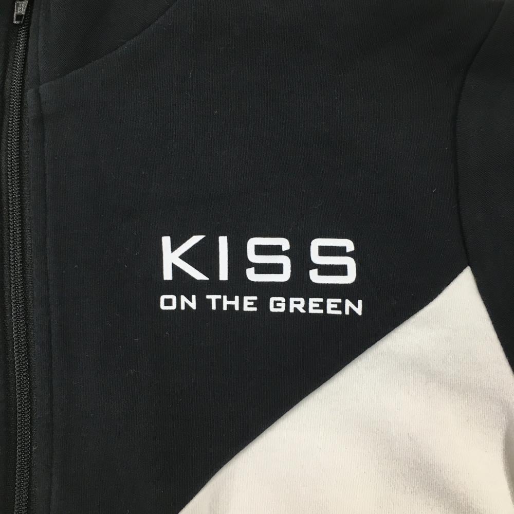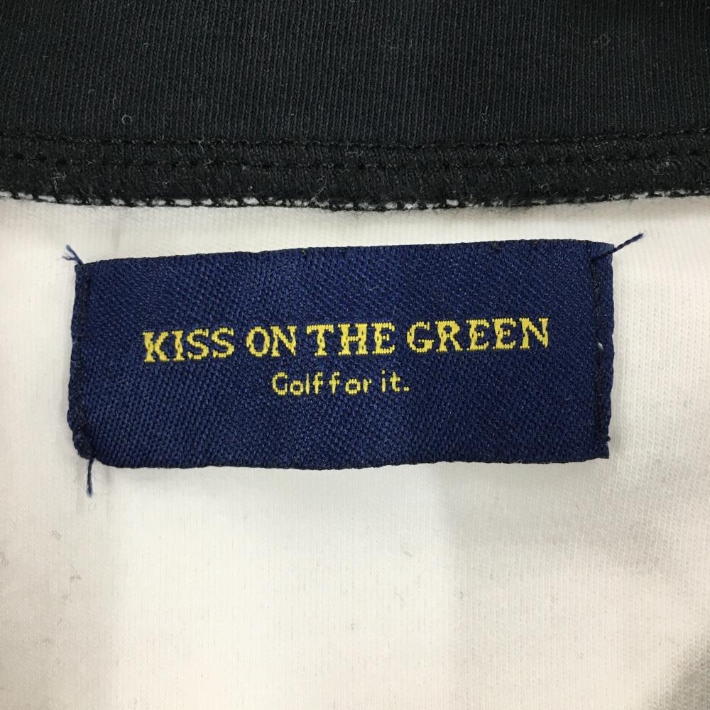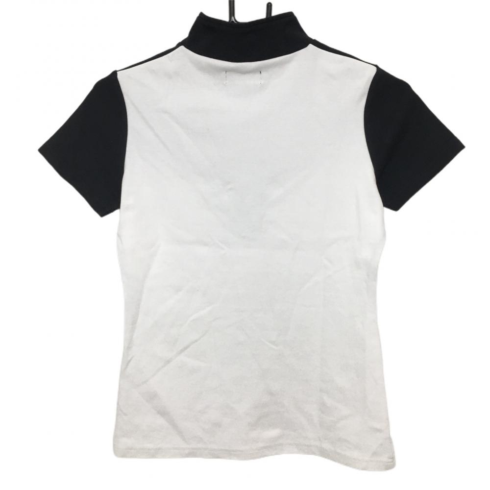 【美品】キスオンザグリーン 半袖ハイネックシャツ 黒×白 ハーフジップ コットン混 レディース 2 ゴルフウェア kiss on the green
