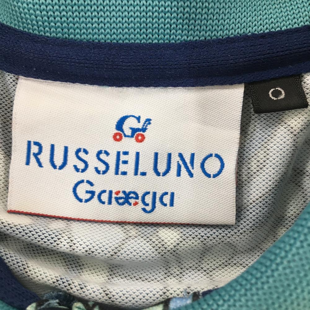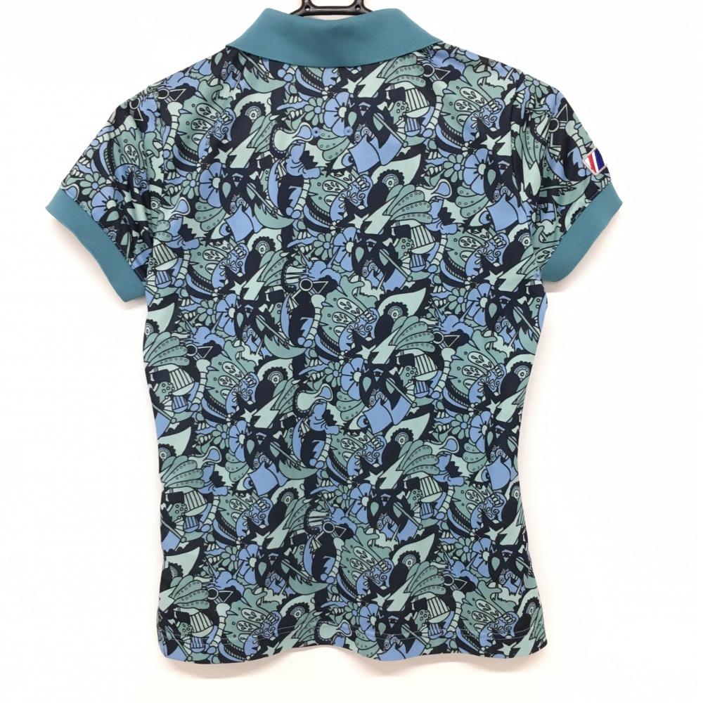 【超美品】ラッセルノ 半袖ポロシャツ ブルーグリーン×ネイビー 総柄 レディース O ゴルフウェア RUSSELUNO
