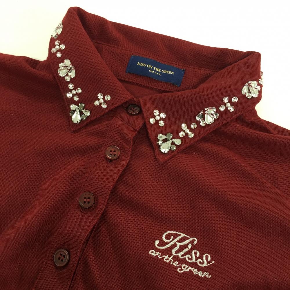 【美品】キスオンザグリーン 長袖ポロシャツ ボルドー ロゴ刺しゅう レディース 3 ゴルフウェア kiss on the green