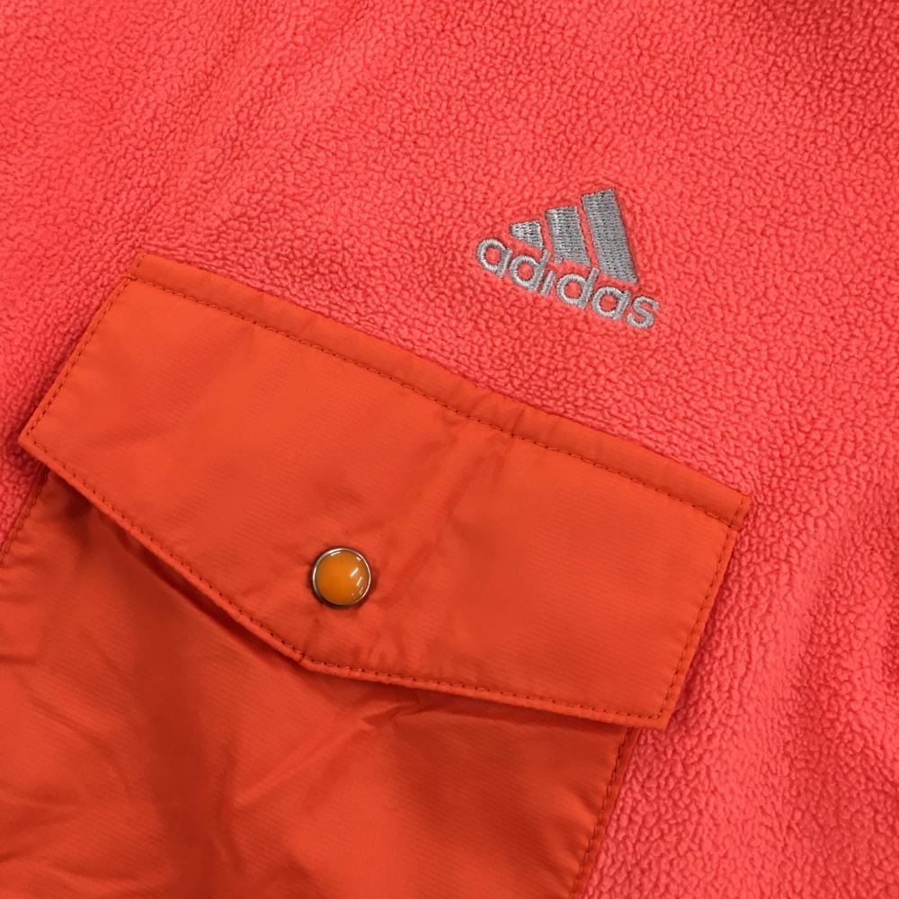 【超美品】アディダス 襟付フリース切替シャツ プルオーバー ピンク×レッド スナップボタン メンズ O/XG ゴルフウェア adidas