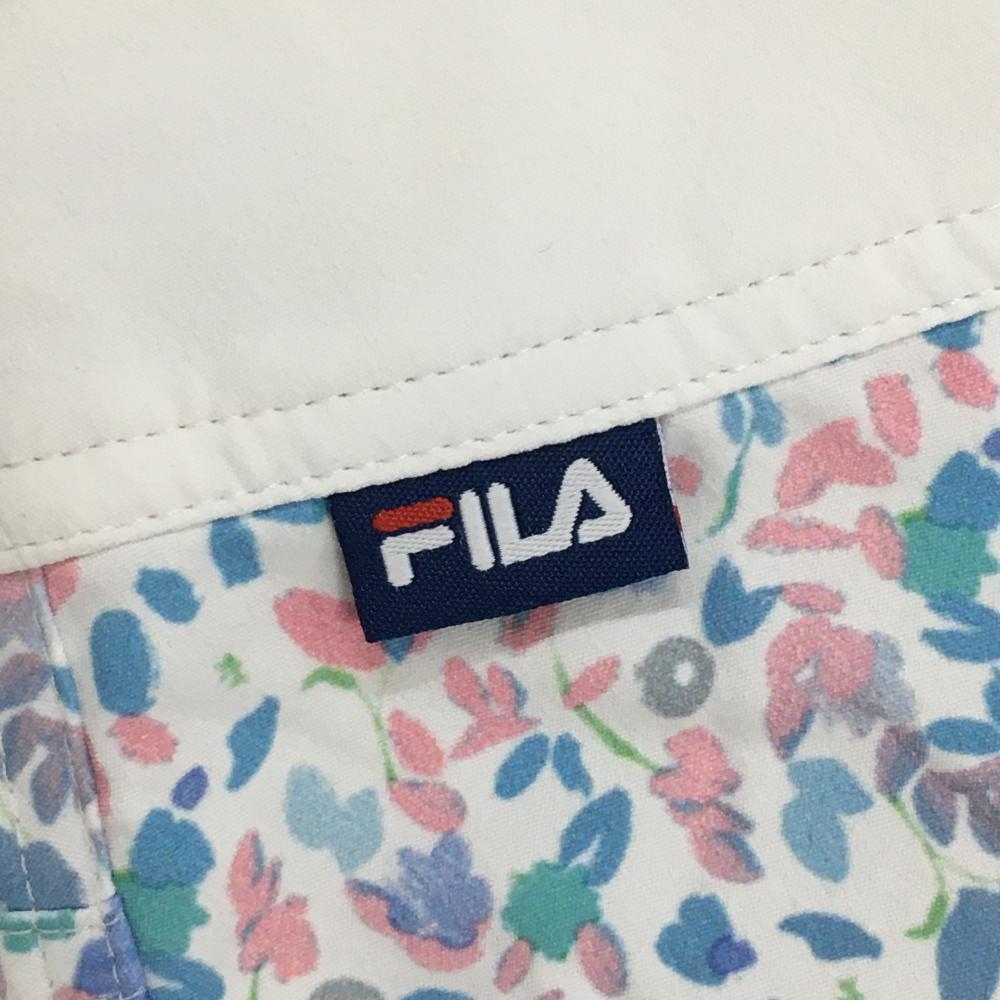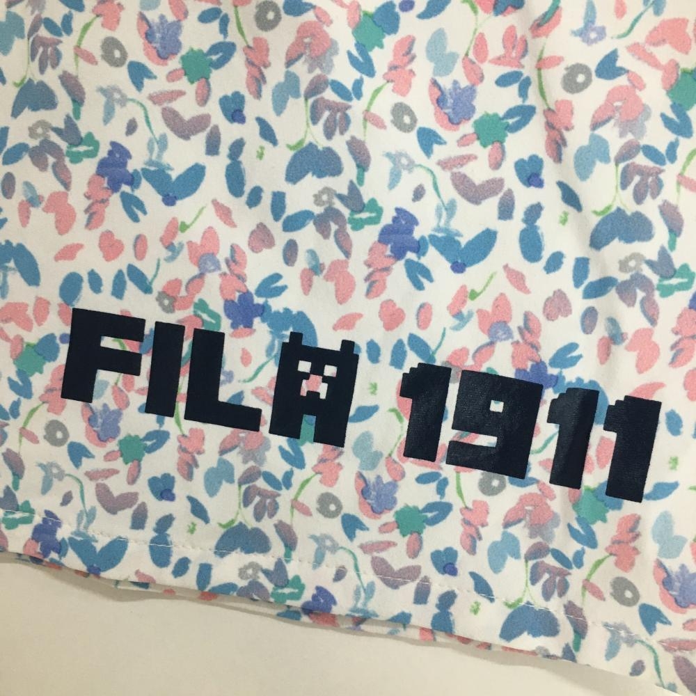 フィラゴルフ スカート 白×マルチ 総柄 裾ロゴプリント ストレッチ レディース M ゴルフウェア FILA GOLF