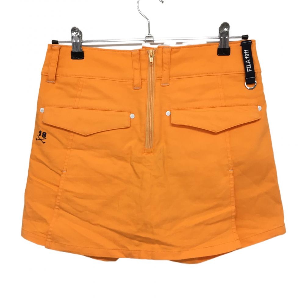 フィラゴルフ キュロットスカート オレンジ×ネイビー ロゴプリント ストレッチ レディース M ゴルフウェア FILA GOLF