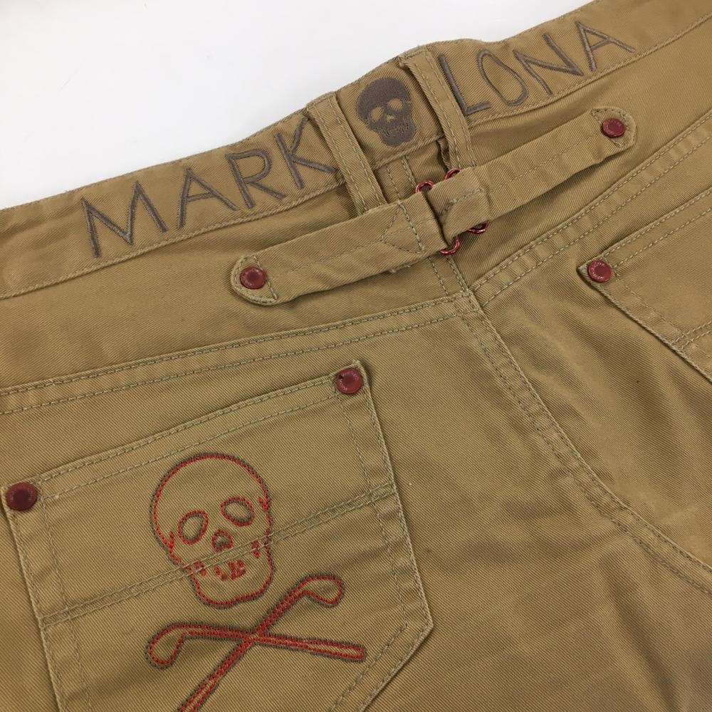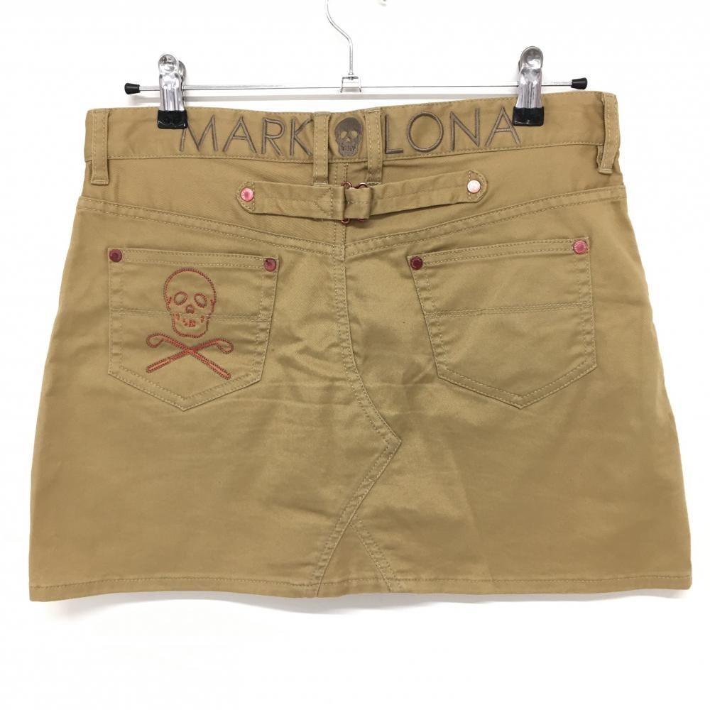 【美品】マークアンドロナ スカート ベージュ ×レッド スカル ストレッチ レディース L ゴルフウェア MARK&LONA