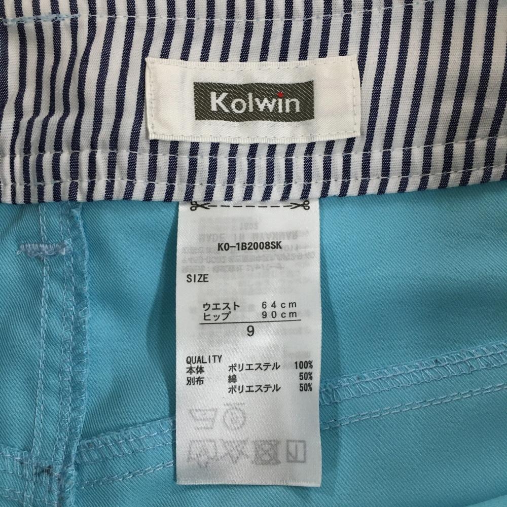 【美品】コルウィン スカート ライトブルー×白 巻きスカート レディース 9 ゴルフウェア Kolwin