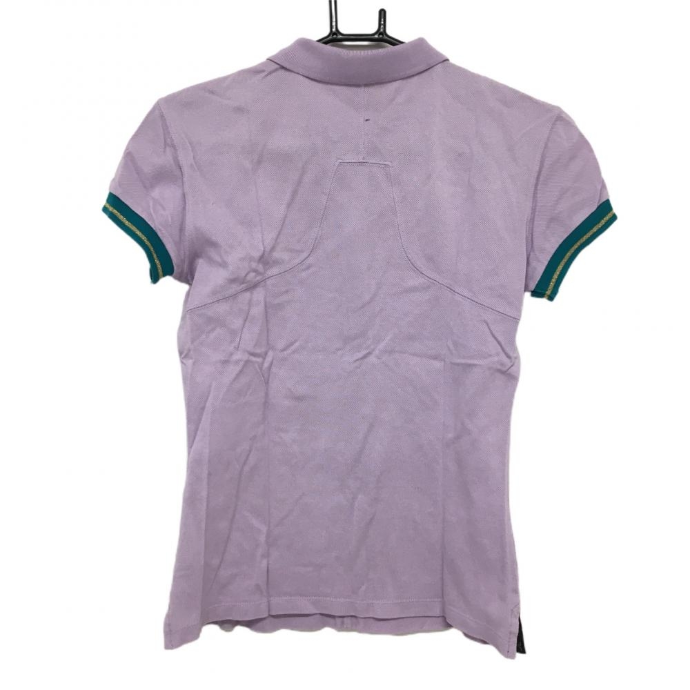 【美品】ジェイリンドバーグ 半袖ポロシャツ ライトパープル×ブルーグリーン ラインストーンロゴ レディース S ゴルフウェア J.LINDEBERG