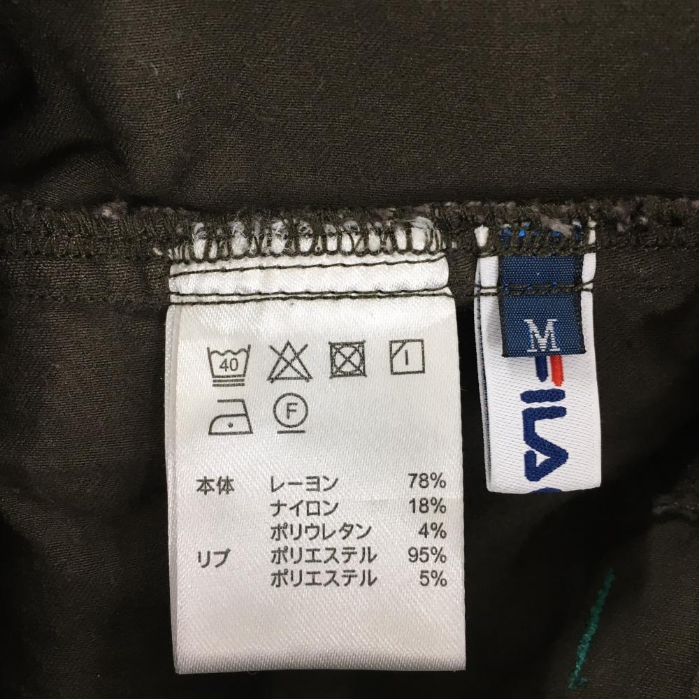 【美品】フィラゴルフ キュロットスカート カーキ 刺しゅう ストレッチ ウエスト一部ゴム レディース M ゴルフウェア FILA GOLF