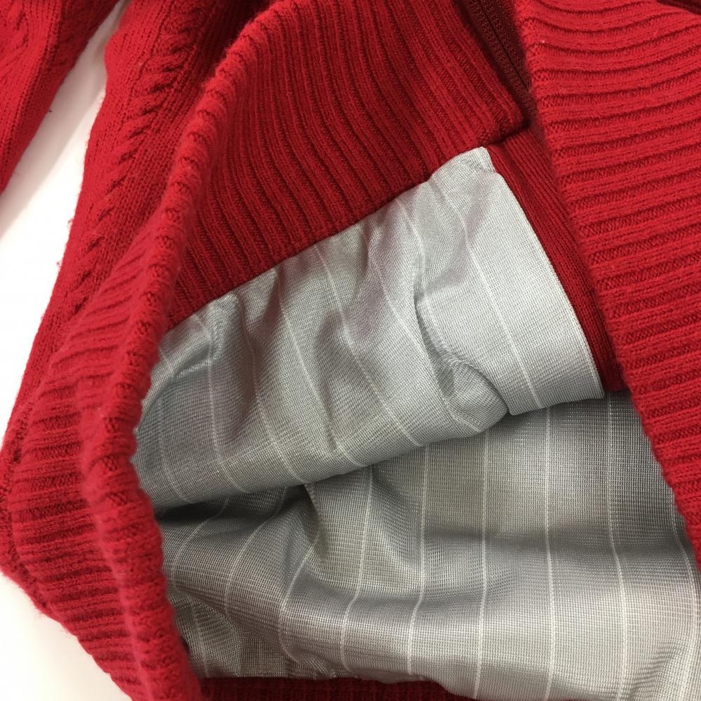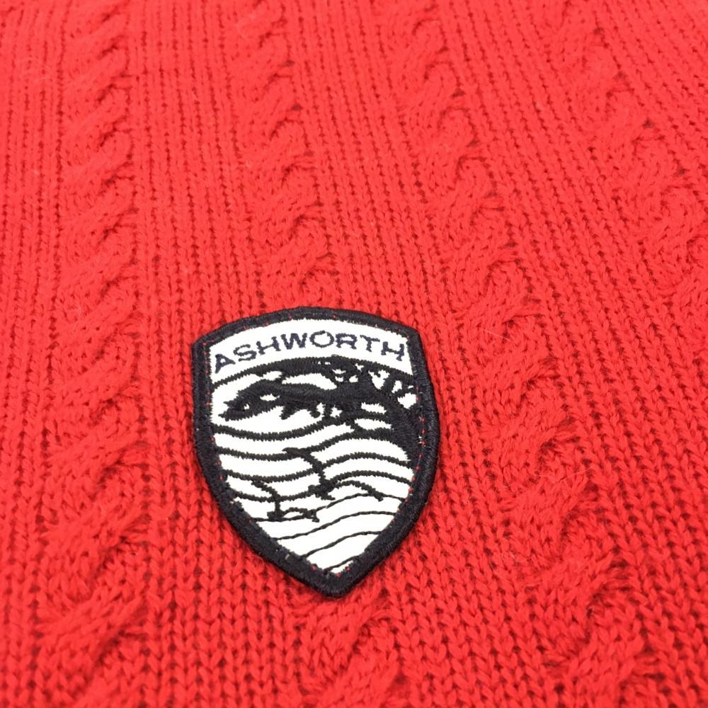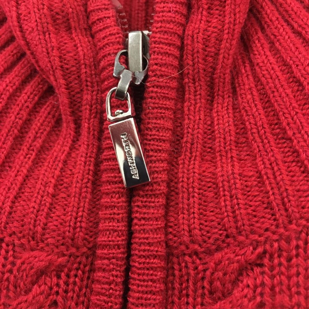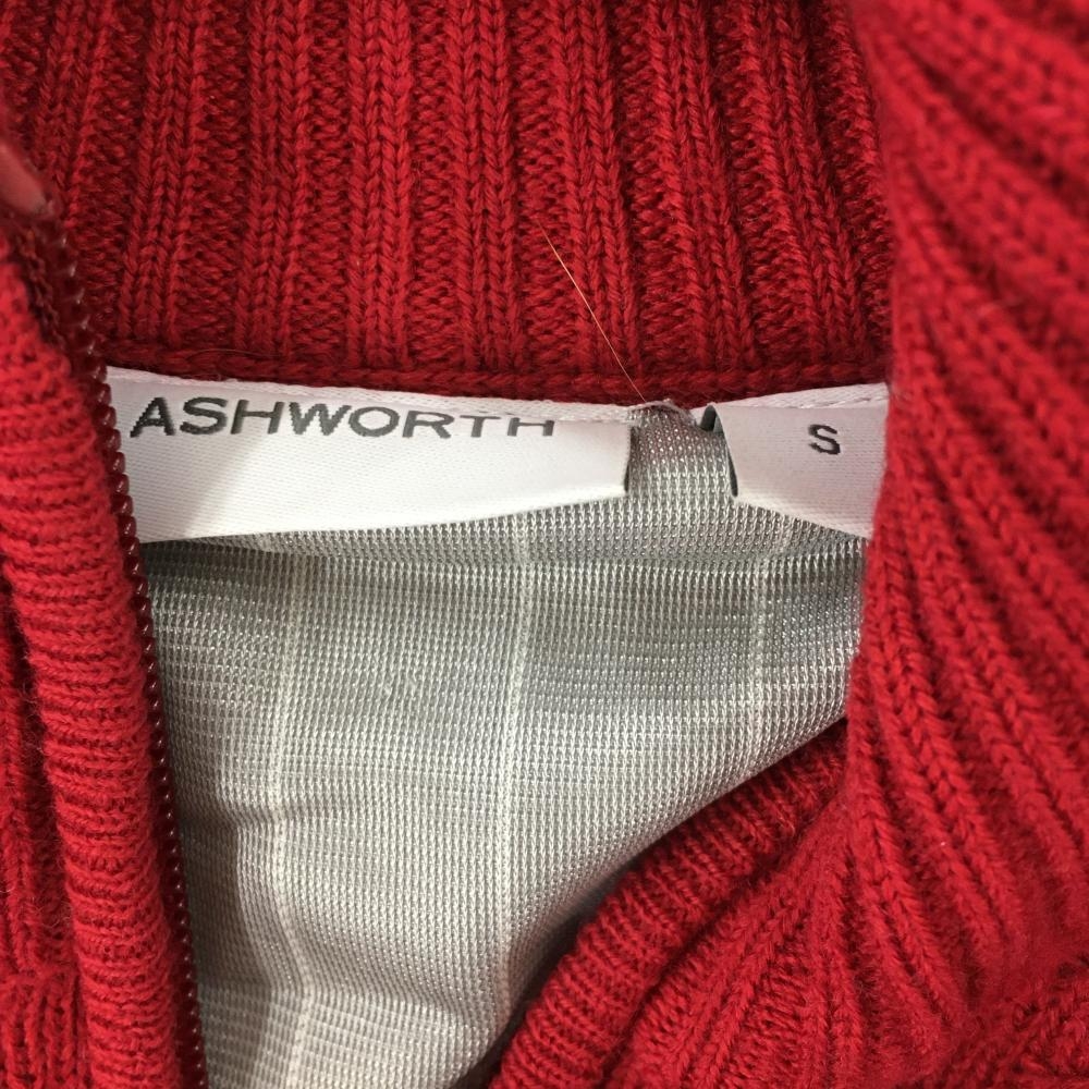 【超美品】アシュワース ニットブルゾン レッド ロゴワッペン ウール混 蓄熱裏地 レディース S ゴルフウェア ASHWORTH