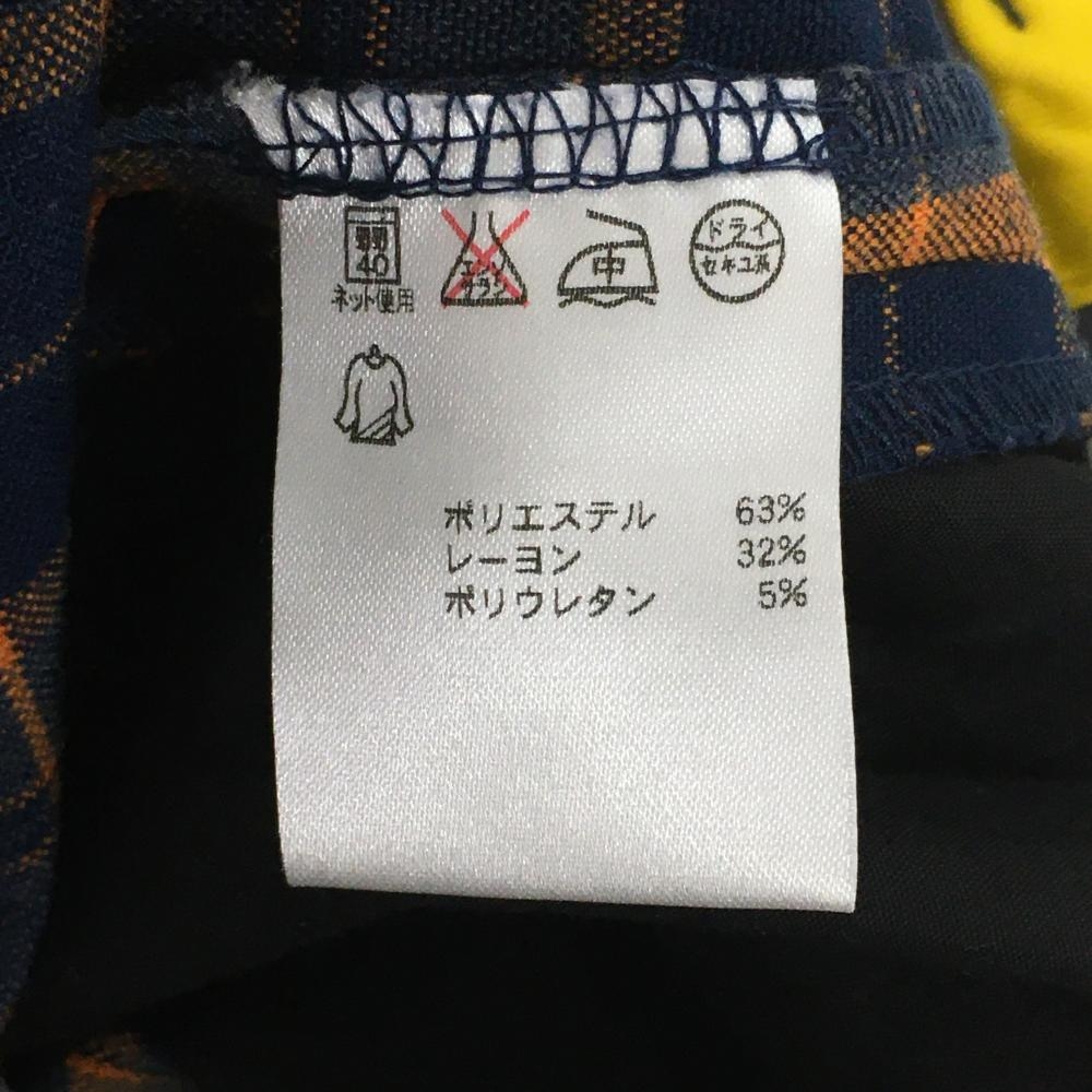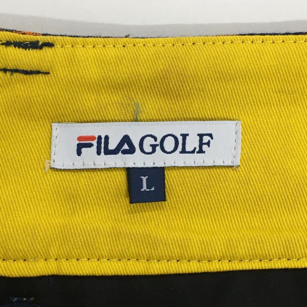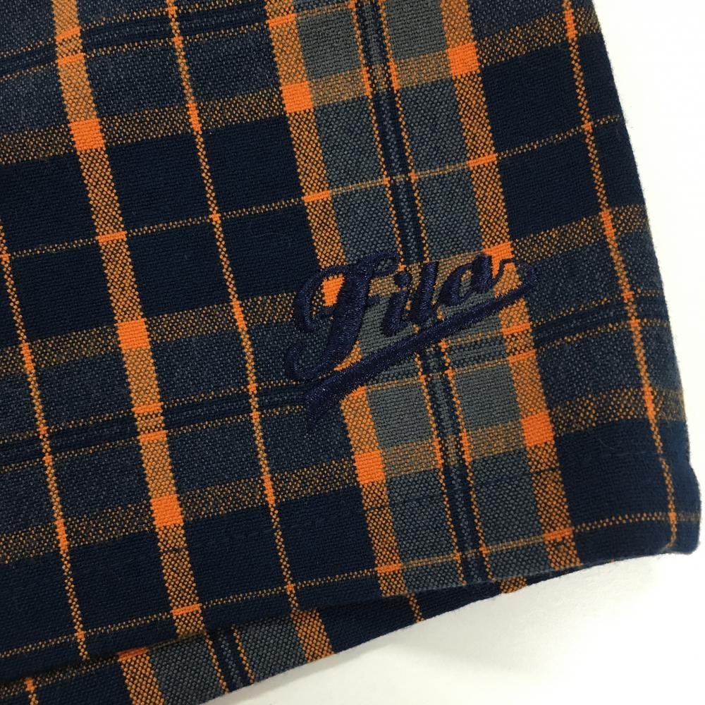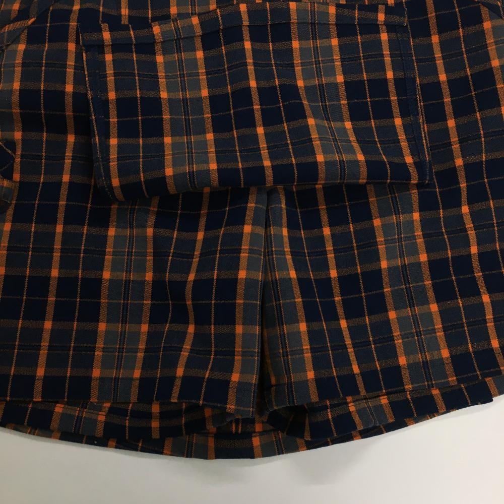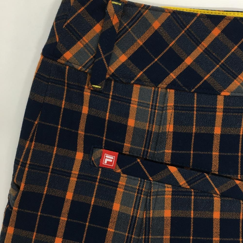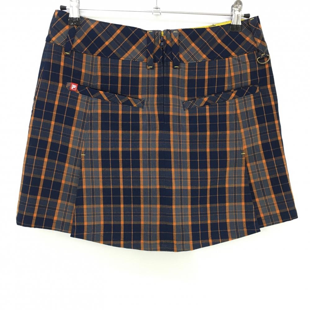 【超美品】フィラゴルフ スカート ネイビー×オレンジ チェック 内側インナーパンツ付き レディース L ゴルフウェア FILA GOLF