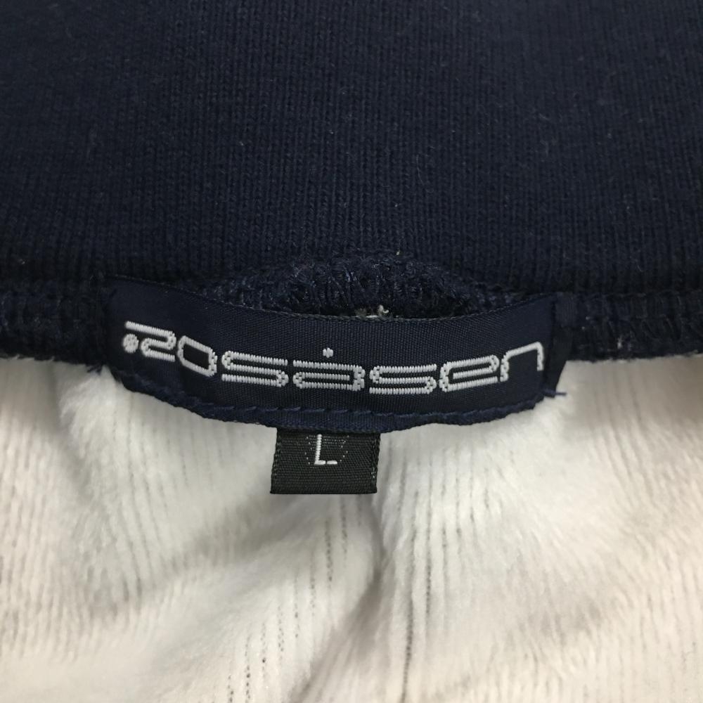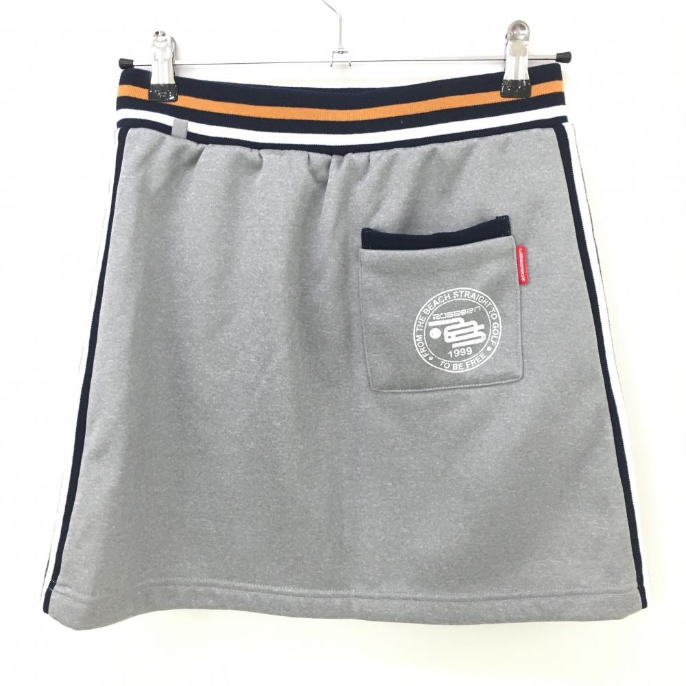 【超美品】ロサーセン 裏起毛スカート グレー×ネイビー ウエストサイドボーダー レディース L ゴルフウェア Rosasen