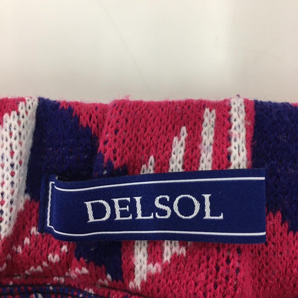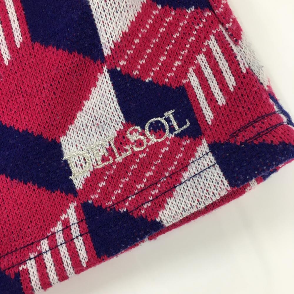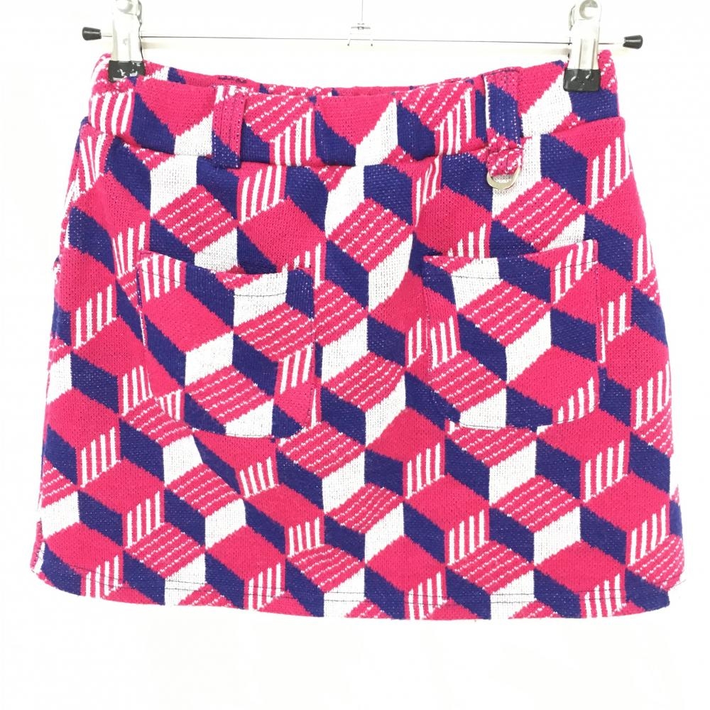 【美品】デルソル スカート ピンク×パープル 総柄 ロゴ刺しゅう 裏地付き ストレッチ レディース M ゴルフウェア DELSOL