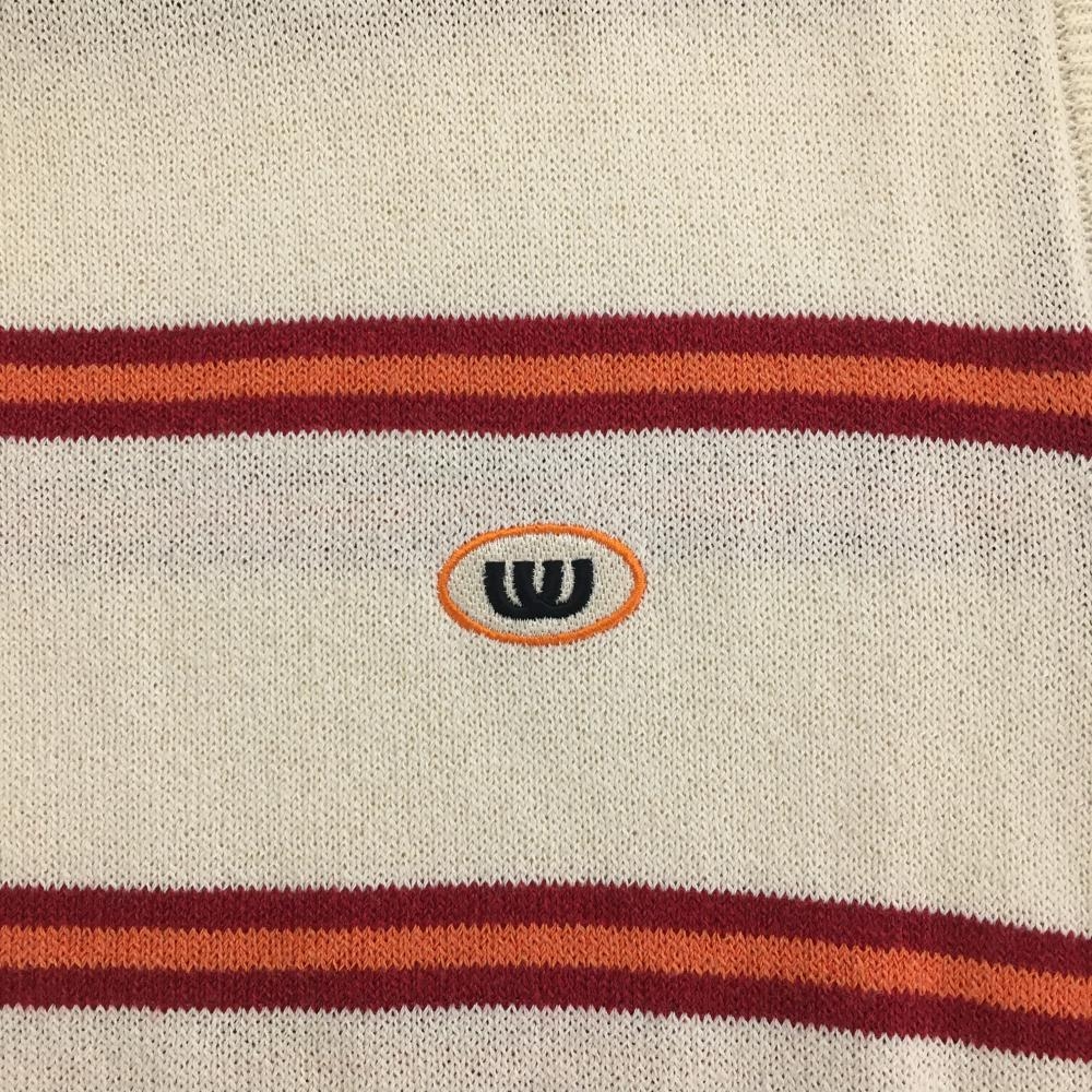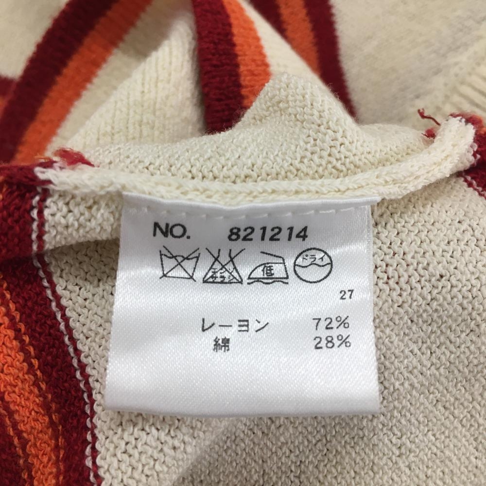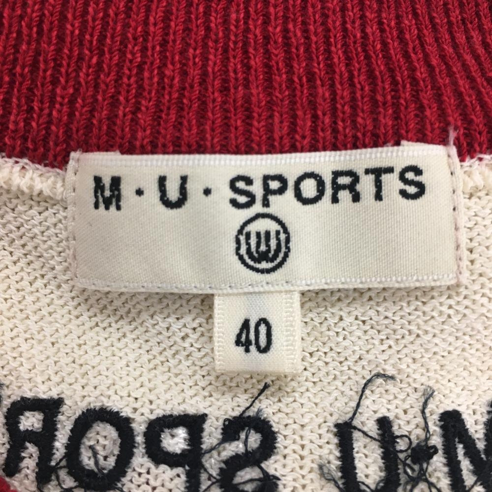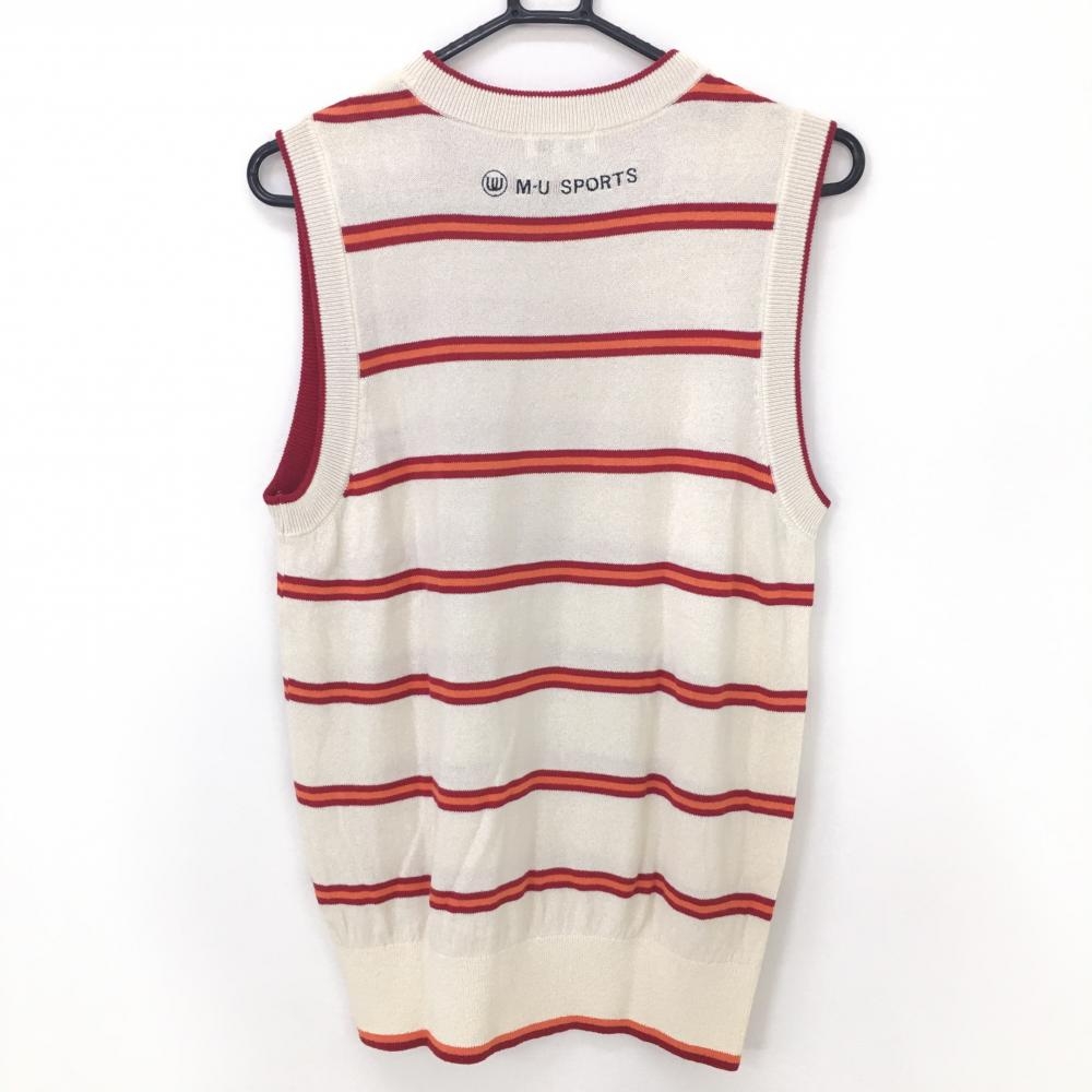 【美品】MUスポーツ ニットベスト アイボリー×レッド ボーダー レーヨン混 レディース 40 ゴルフウェア M・U SPORTS