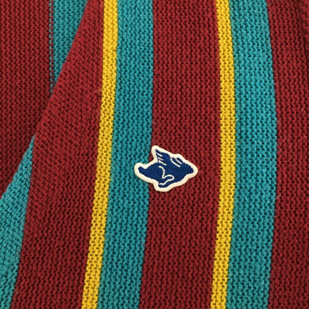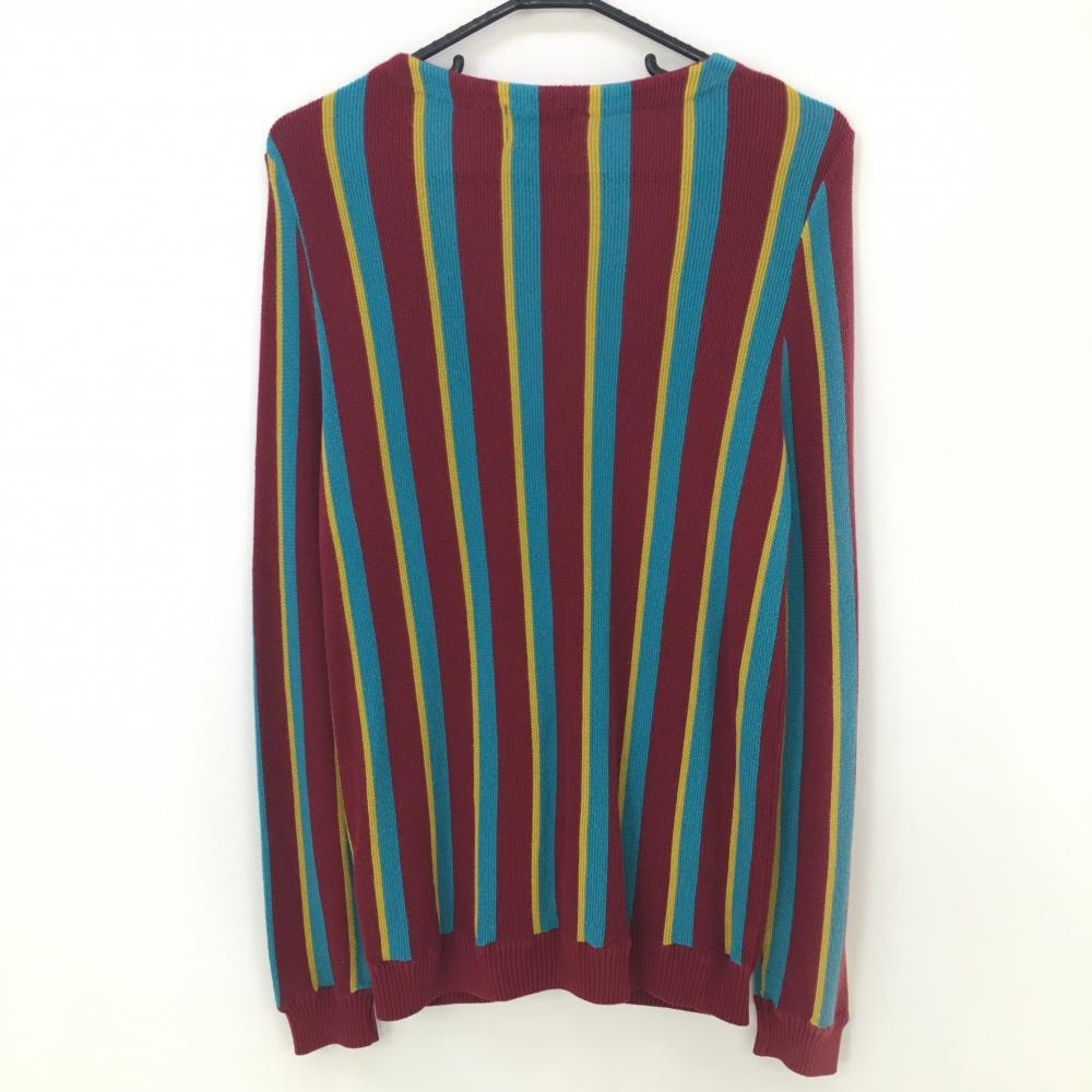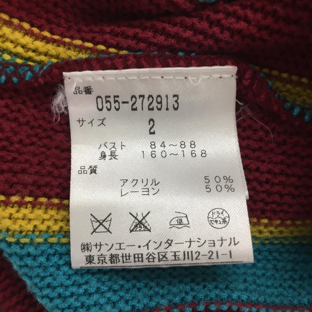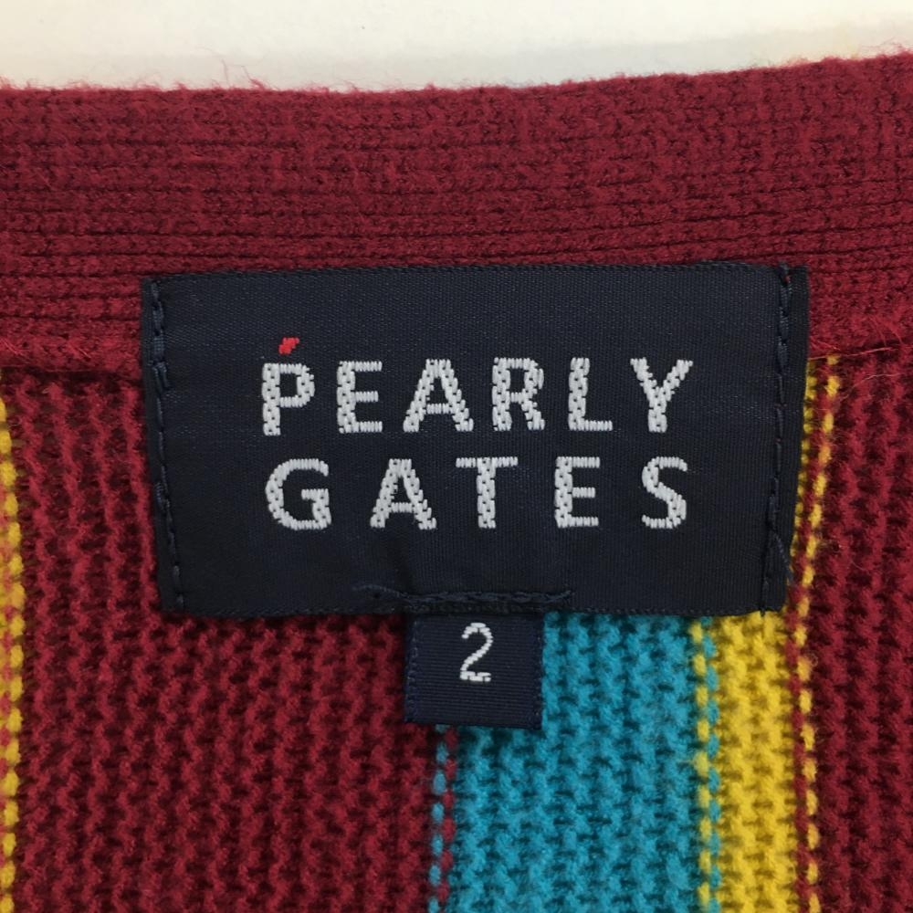 【美品】パーリーゲイツ ニットカーディガン レッド×ライトブルー ストライプ アクリル混 レディース 2(L) ゴルフウェア PEARLY GATES