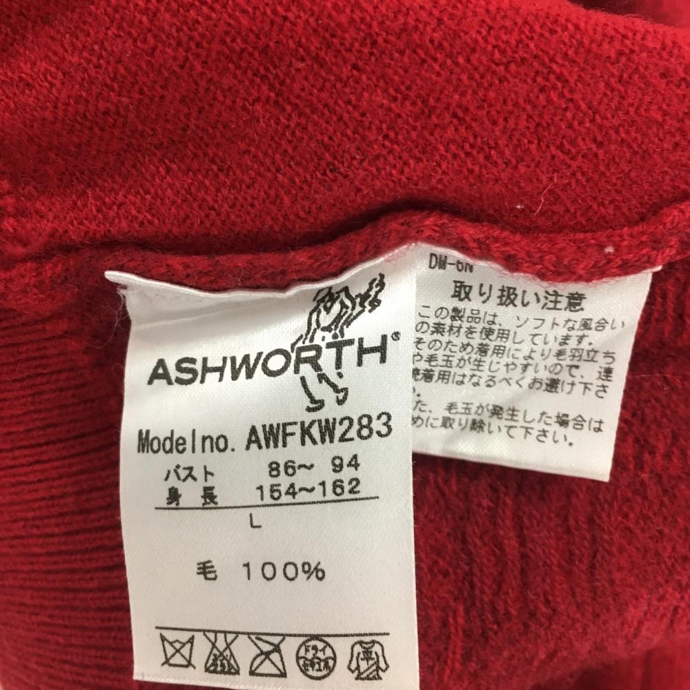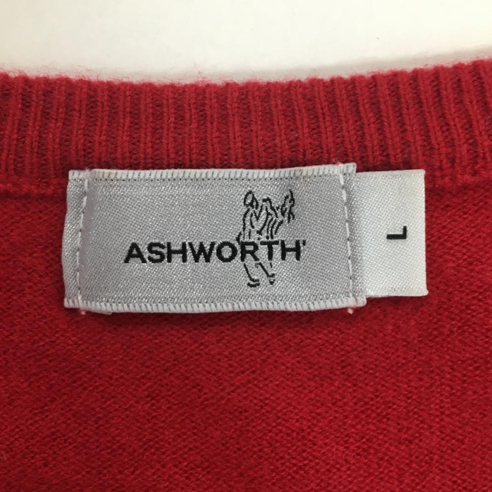 【美品】アシュワース Vネックセーター レッド 腹部 前面チェック レディース L ゴルフウェア ASHWORTH
