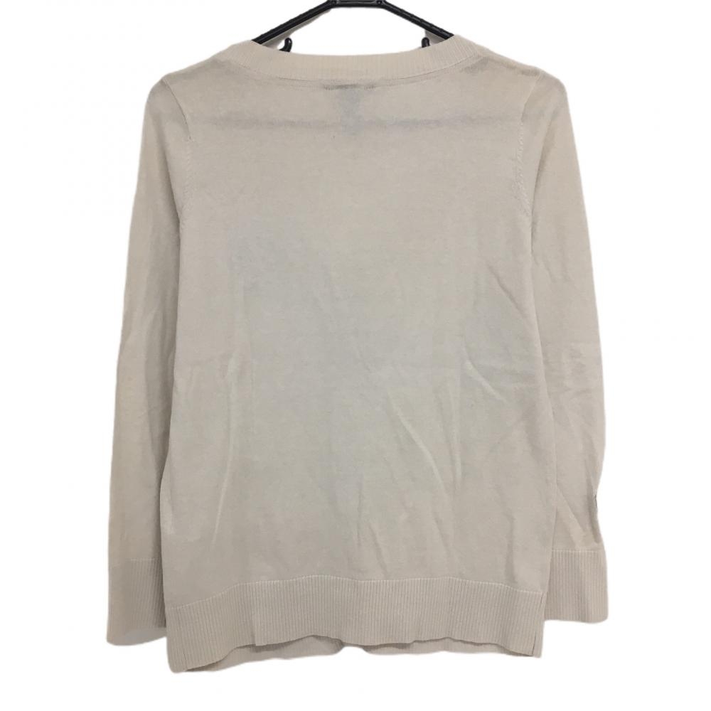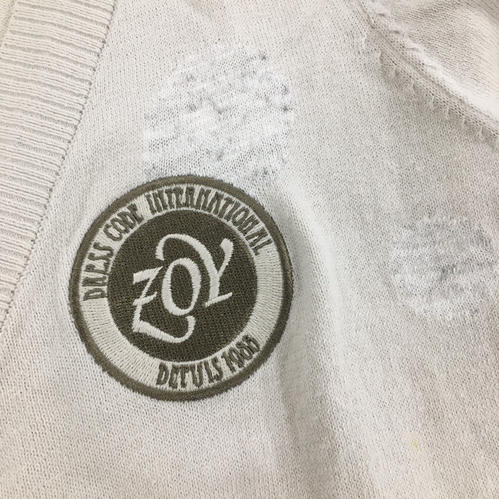 【美品】ゾーイ ニットカーディガン ベージュ×白 前ドット シルク混 レディース 40(L) ゴルフウェア ZOY