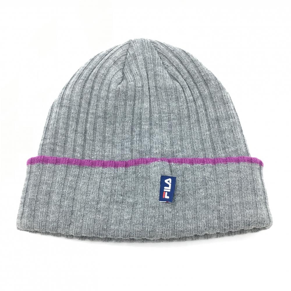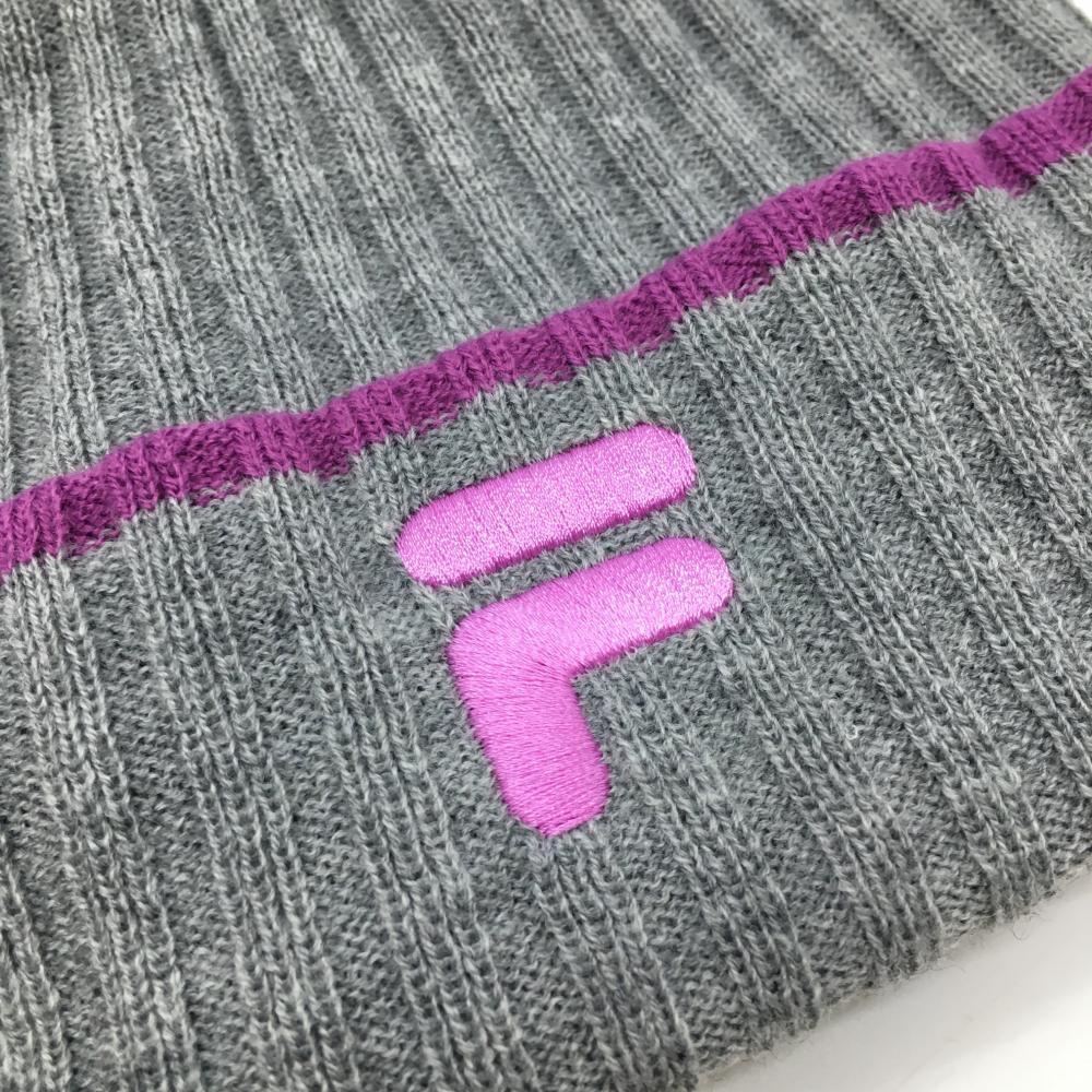 【超美品】フィラゴルフ ニット帽 グレー×パープル ロゴ刺しゅう ゴルフウェア FILA GOLF
