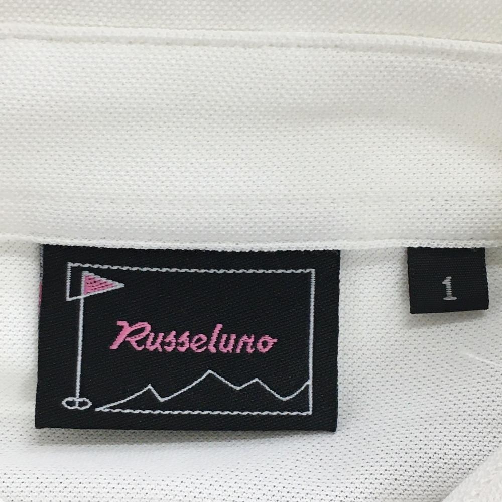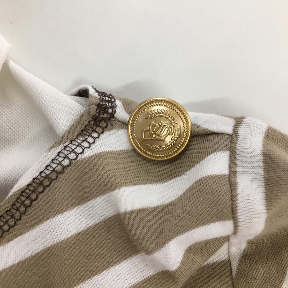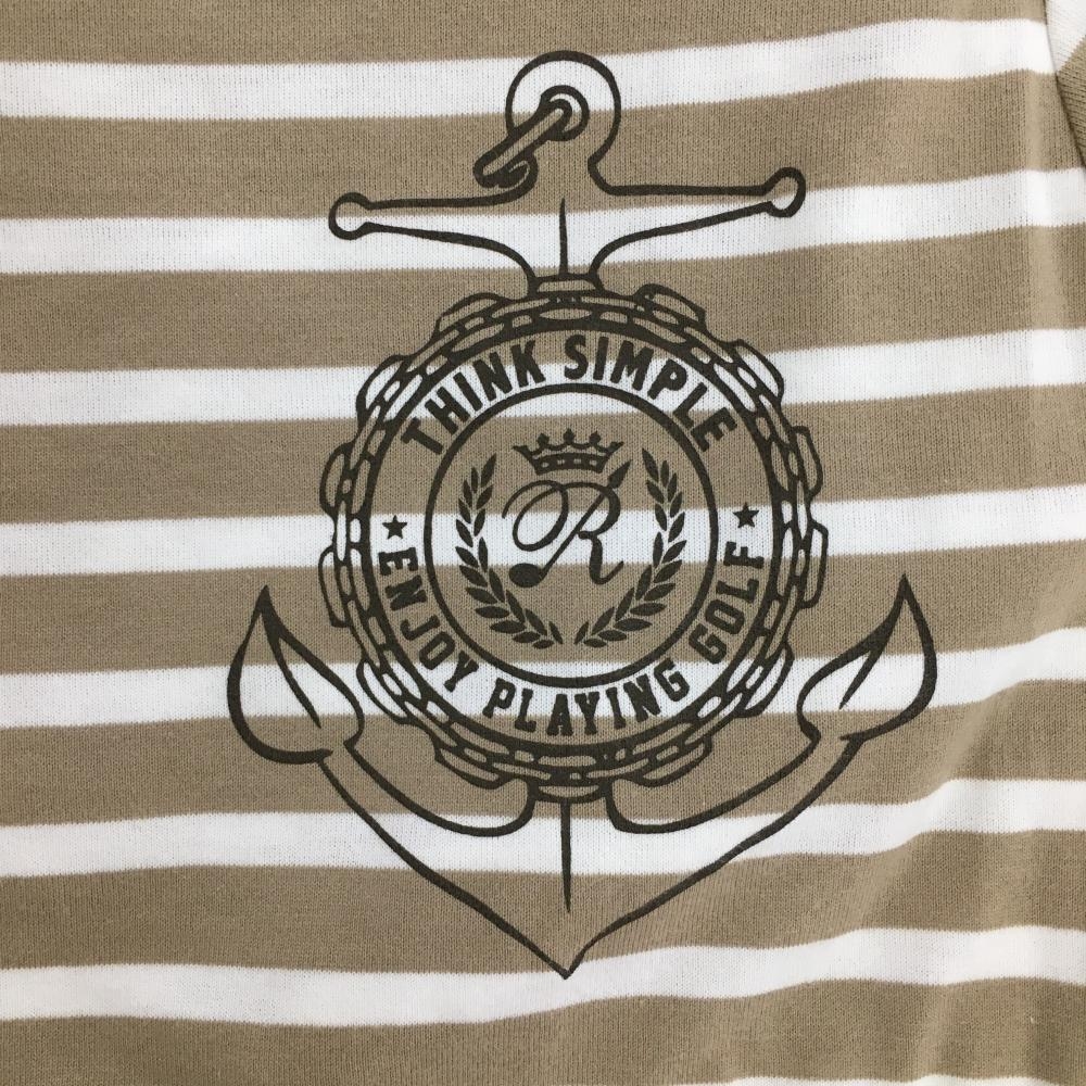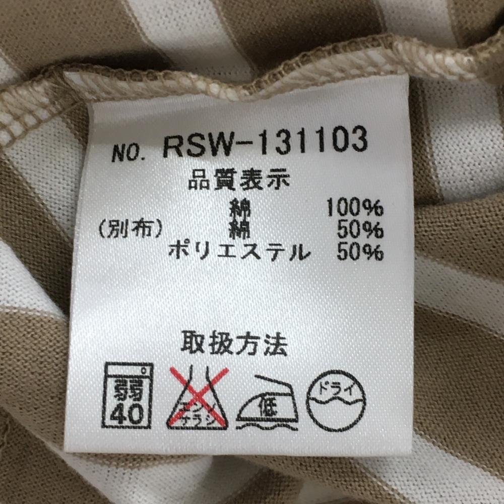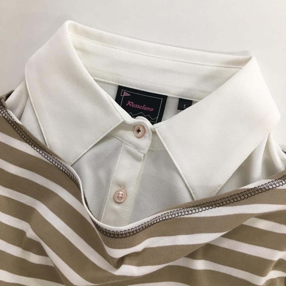 【超美品】ラッセルノ 七分袖長袖Tシャツ ライトブラウン×白 ボーダー 襟重ね着風 レディース 1(M) ゴルフウェア RUSSELUNO