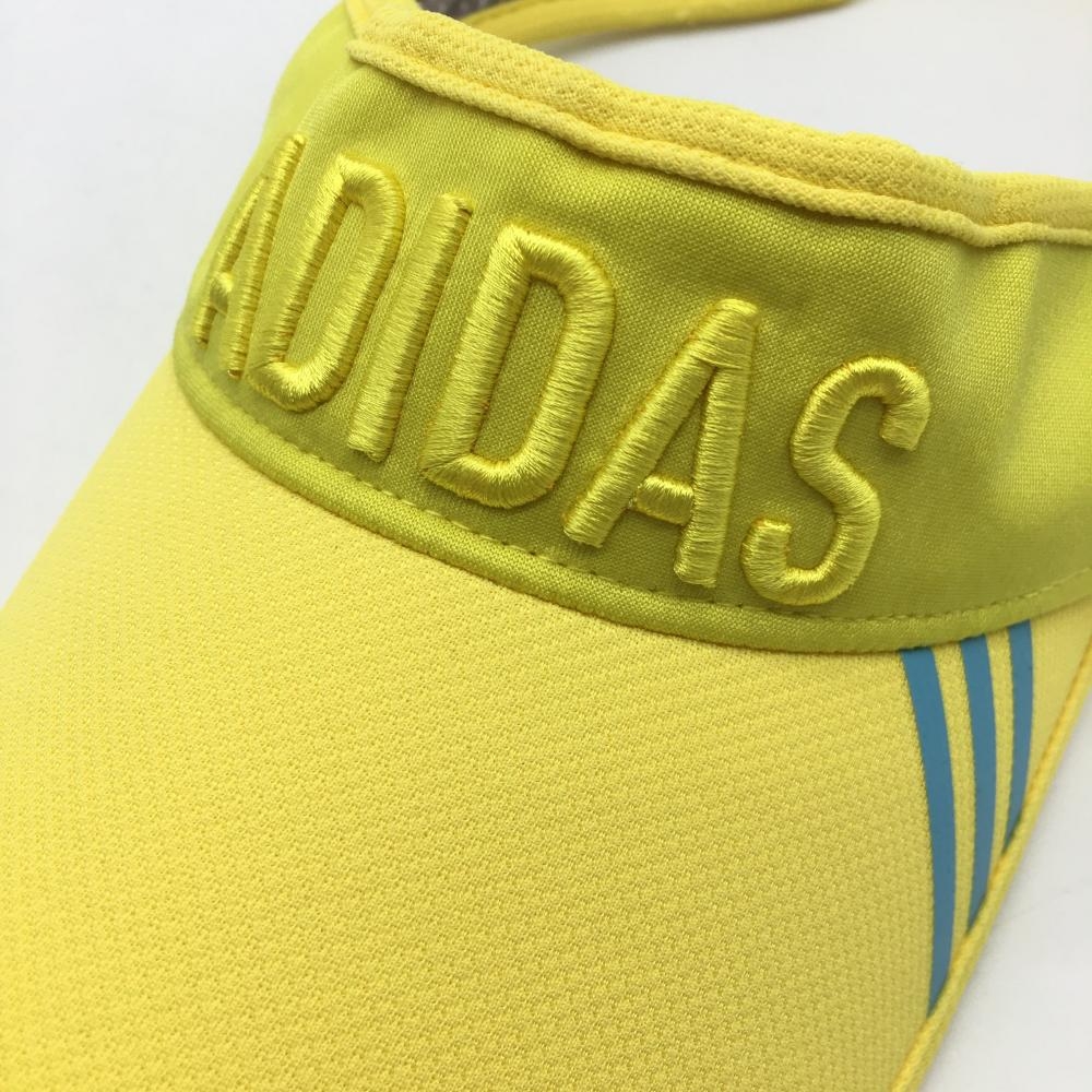 【超美品】アディダス サンバイザー イエロー×ライトブルー 3ライン フリー(56-58㎝) ゴルフウェア adidas