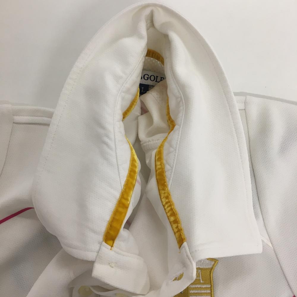 フィラゴルフ 半袖ポロシャツ 白×ピンク 刺しゅうワッペン メンズ L ゴルフウェア FILA GOLF
