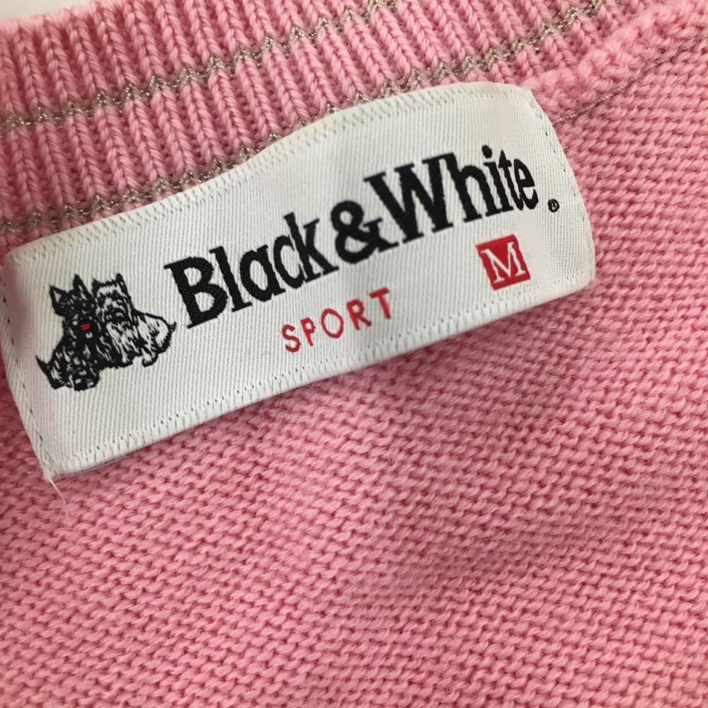 【超美品】ブラックアンドホワイト セーター ピンク Vネック 前面ダイヤ編み レディース M ゴルフウェア Black&White