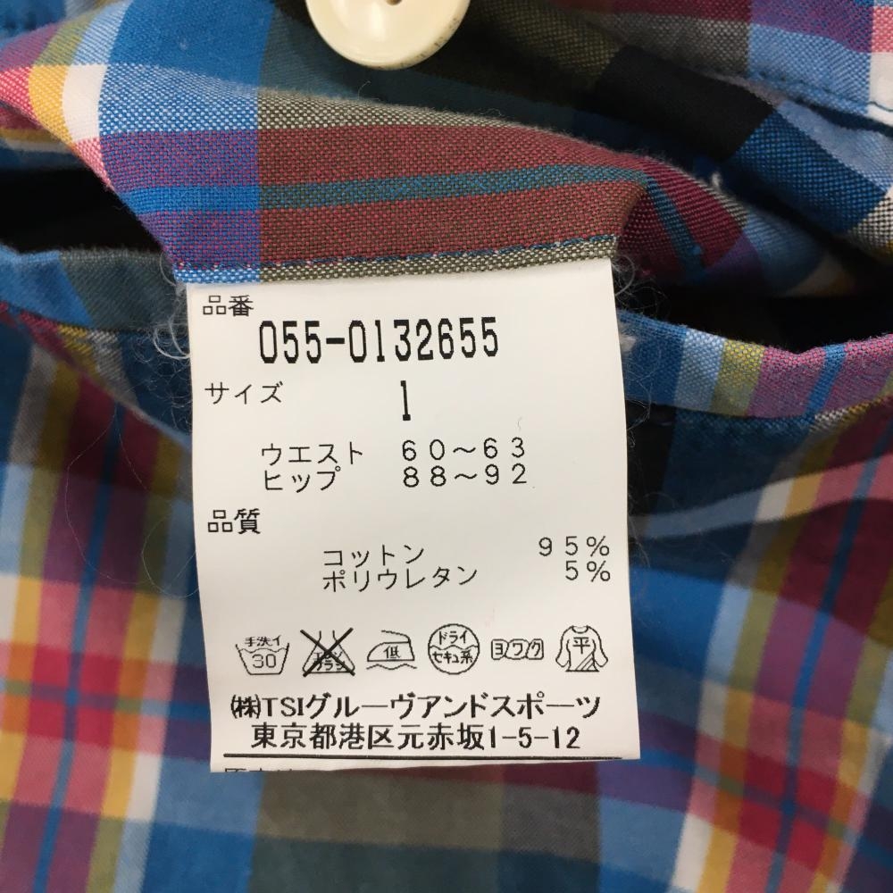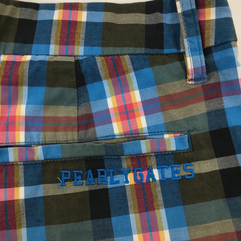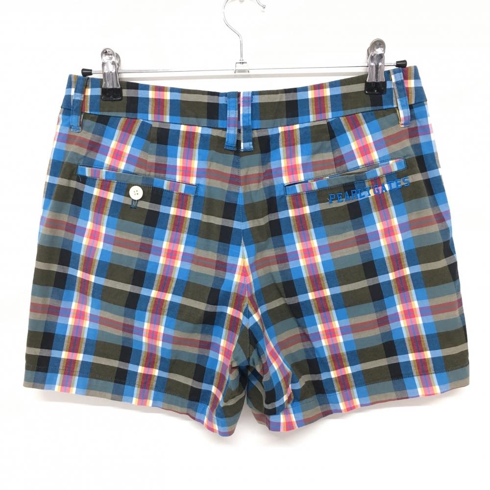 【超美品】パーリーゲイツ ショートパンツ カーキ×ライトブルー チェック コットン混 レディース 1(M) ゴルフウェア PEARLY GATES
