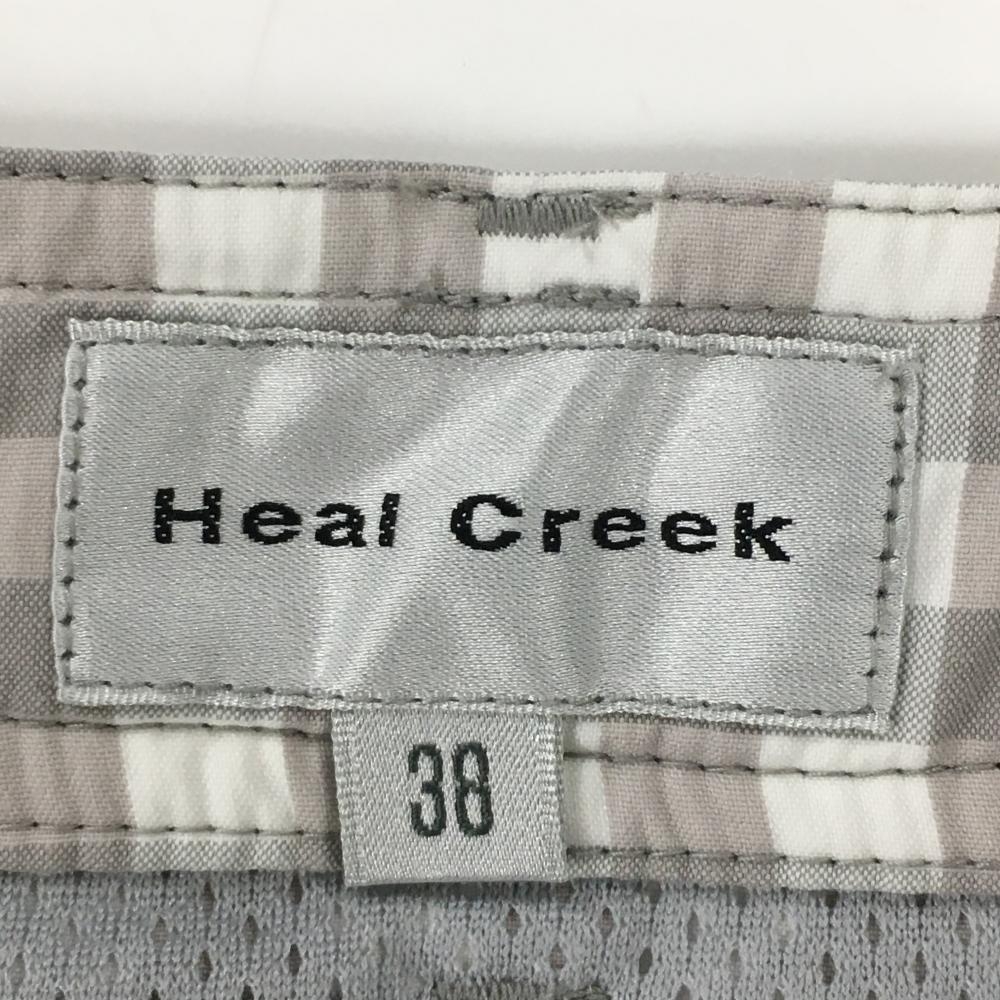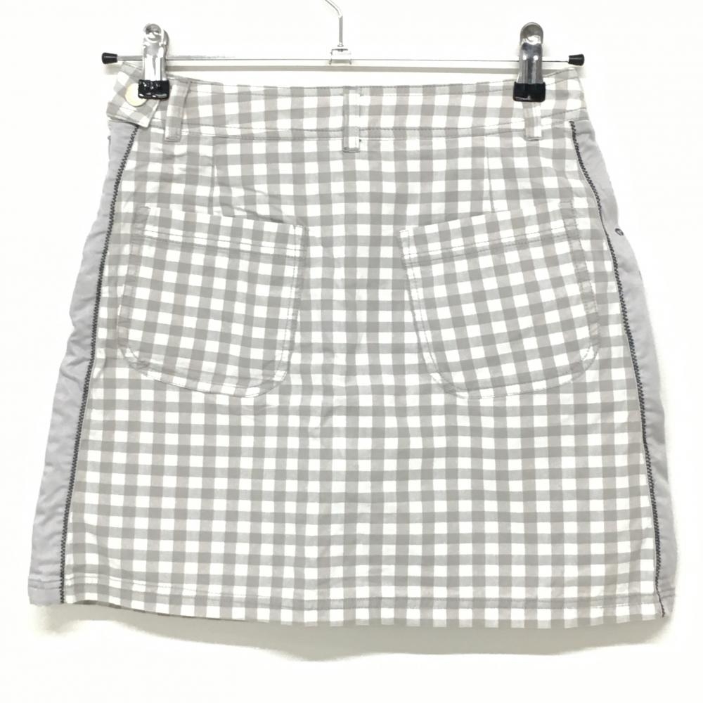 【美品】ヒールクリーク スカート ライトグレー×白 チェック 内側インナーパンツ レディース 38 ゴルフウェア Heal Creek