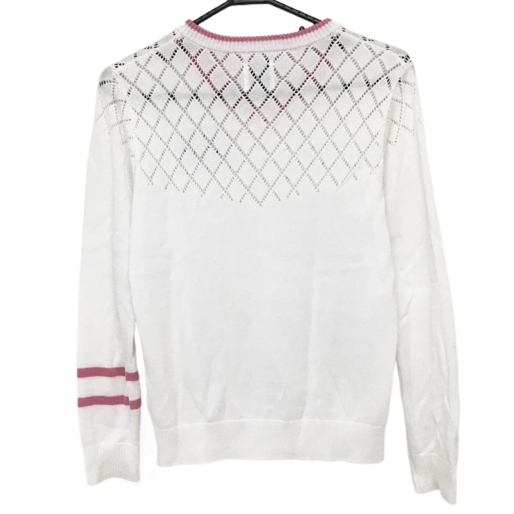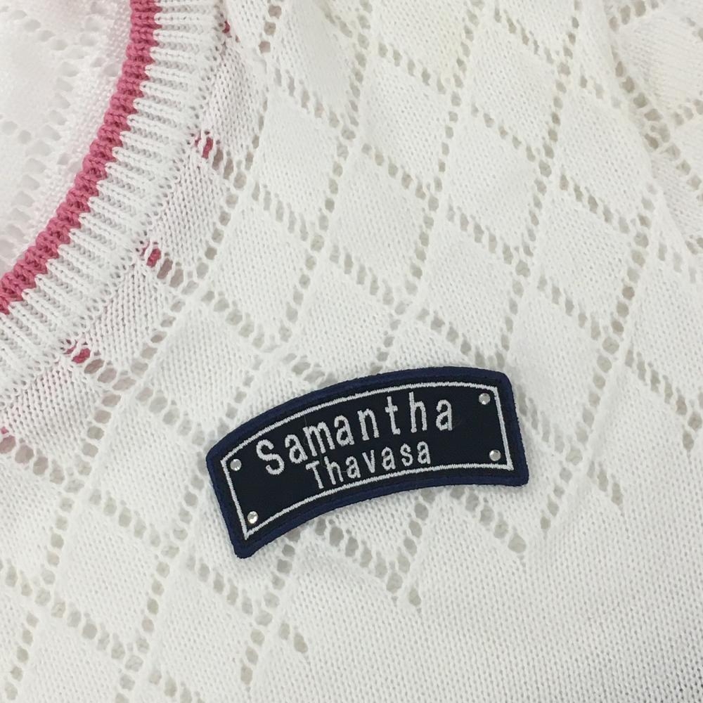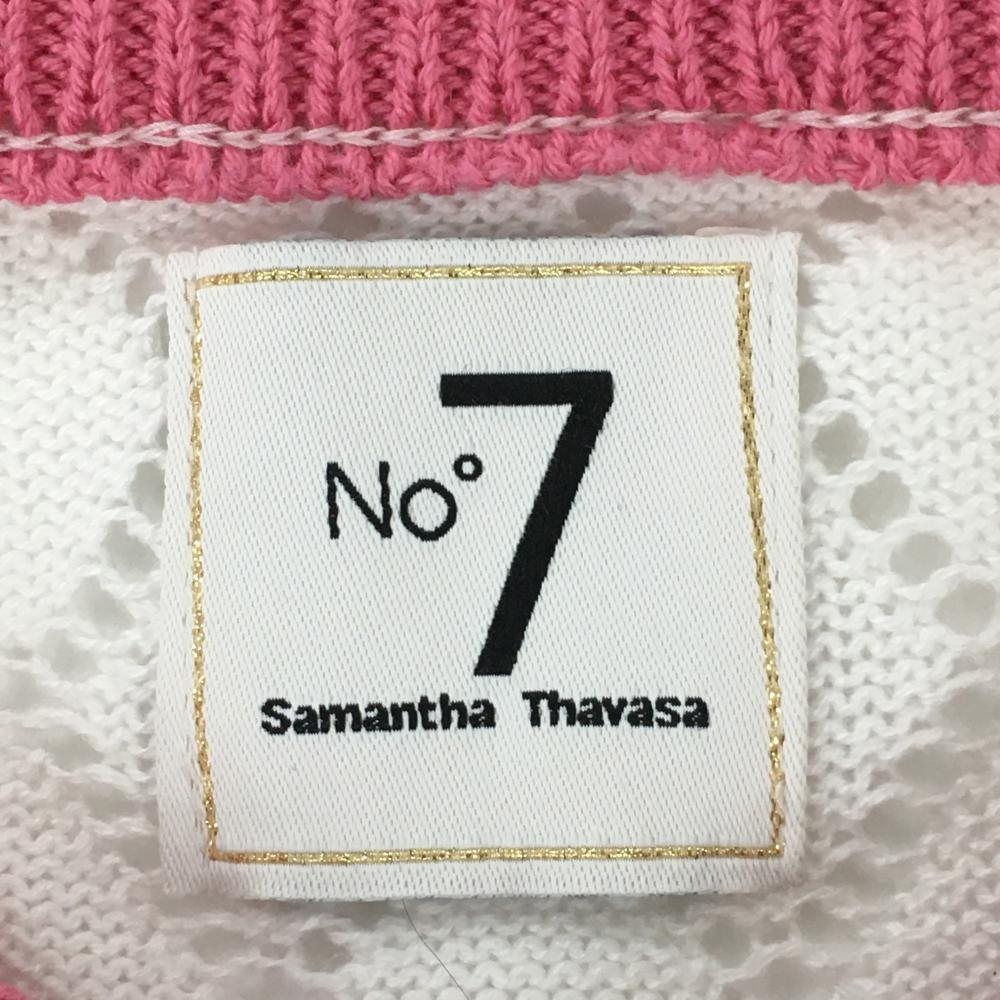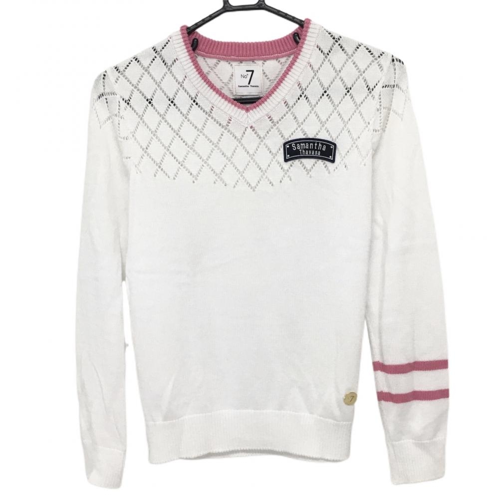 【美品】サマンサタバサ No.7 セーター 白×ピンク 上部透かし編み Vネック ニット レディース 38(S) ゴルフウェア Samantha Thavasa
