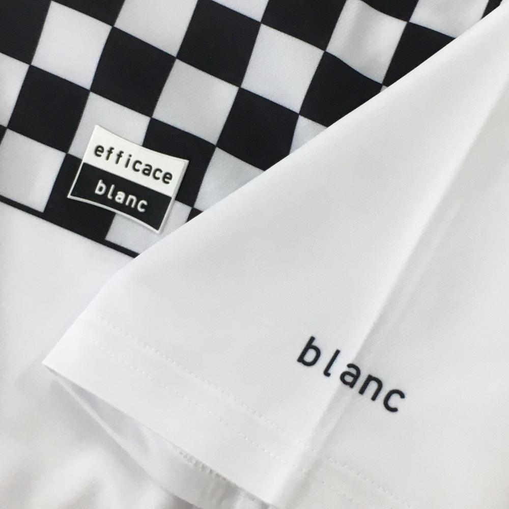 【新品】エフィカス 半袖ハイネックシャツ 白×黒 肩ブロックチェック レディース S ゴルフウェア efficace