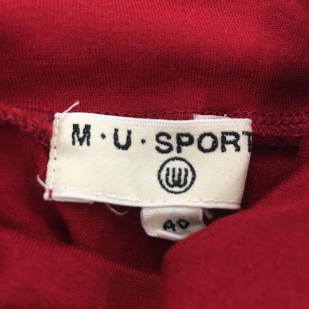 【超美品】MUスポーツ 長袖ハイネックシャツ レッド 犬刺しゅう ドッグ レディース 40 ゴルフウェア M・U SPORTS