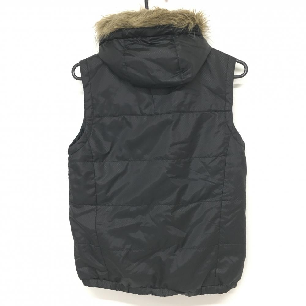 フィラ 2WAY中綿ベスト 黒 ブロックチェック地模様 フード着脱可 レディース L ゴルフウェア FILA GOLF