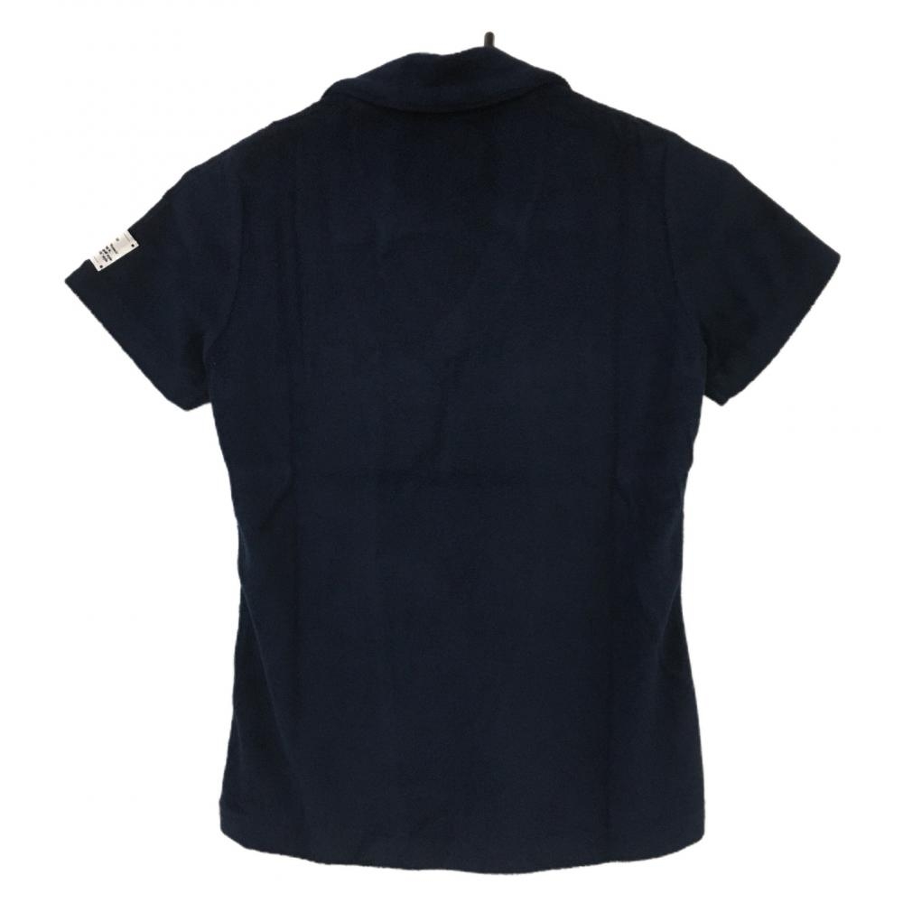 【新品】エフィカス 半袖スキッパーシャツ ネイビー×ライトブルー パイル地 フロントワッペン レディース S ゴルフウェア efficace