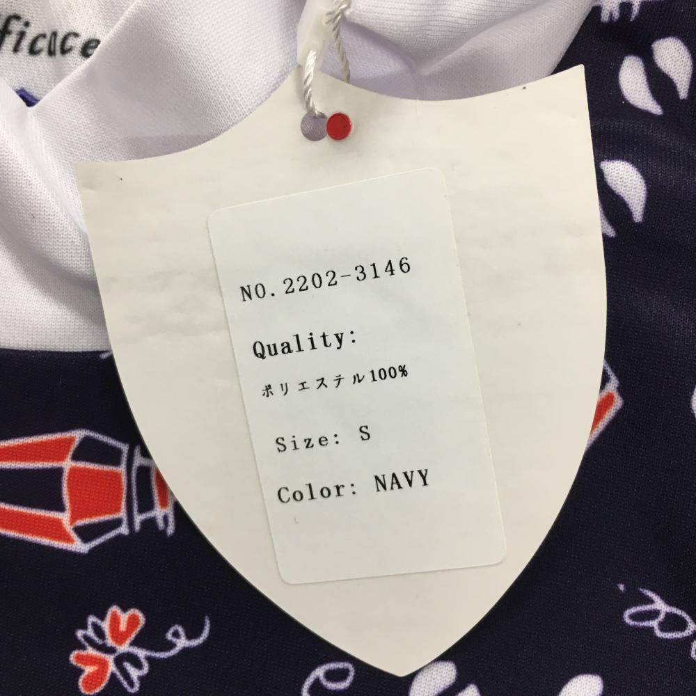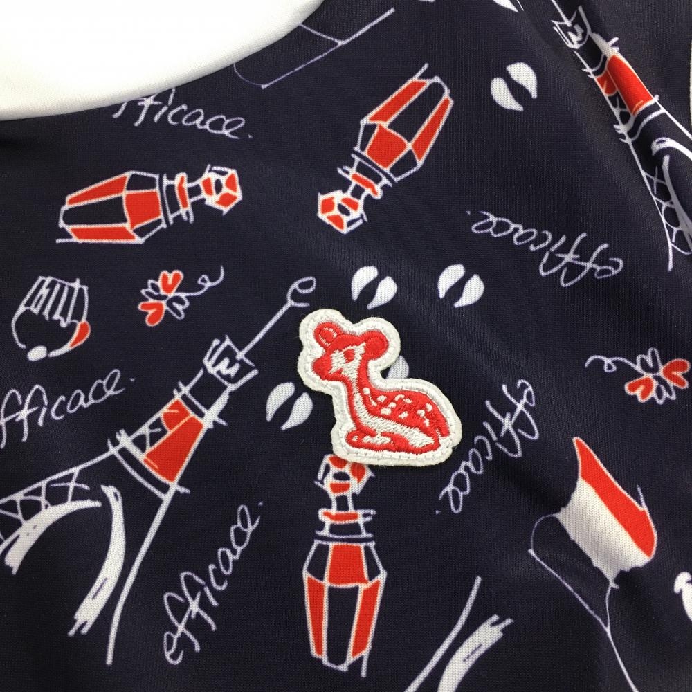 【新品】エフィカス 半袖ハイネックシャツ ネイビー×白 エッフェル塔 国旗 レディース S ゴルフウェア efficace