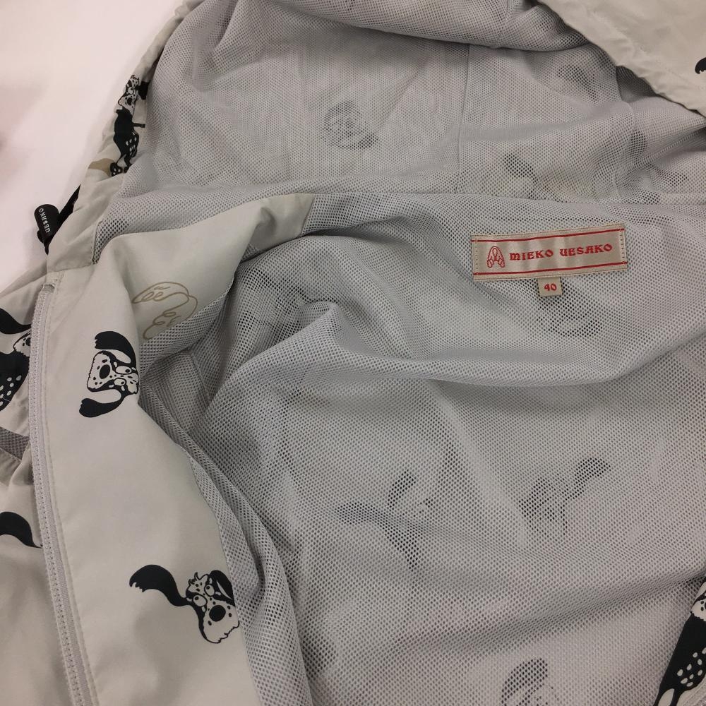 【美品】ノイジーノイジー 半袖ブルゾン ライトグレー×黒 総柄 裏地メッシュ MUスポーツ レディース 40(M) ゴルフウェア M・U SPORTS