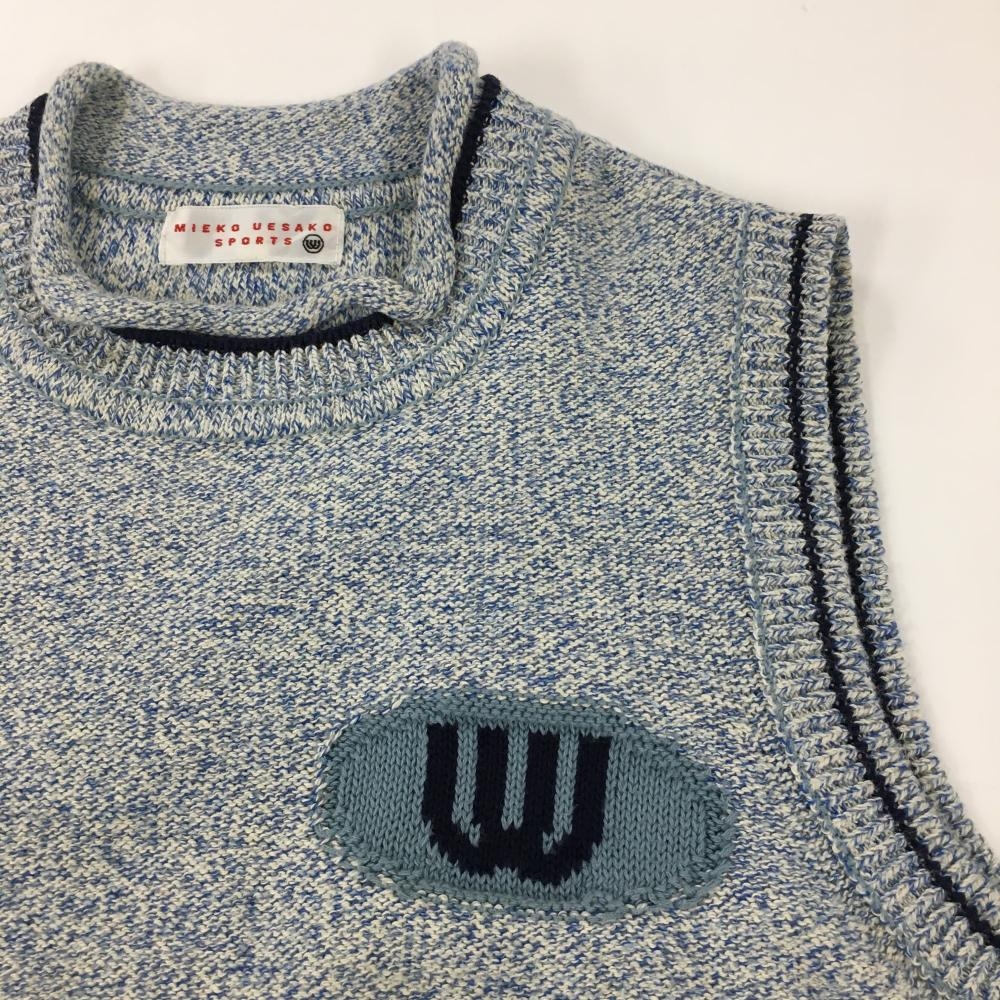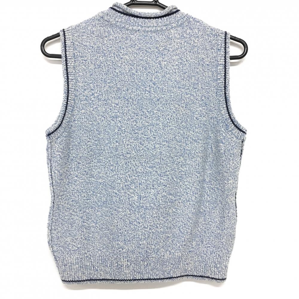MUスポーツ ニットベスト ライトブルー×白 コットン混 レディース 40(M) ゴルフウェア M・U SPORTS